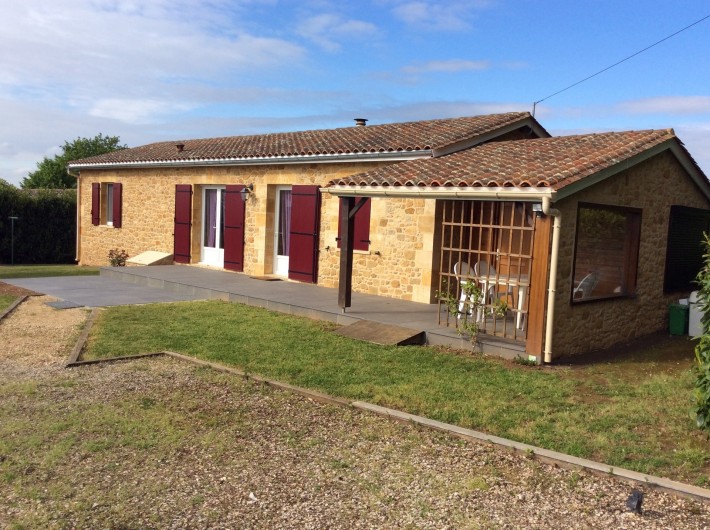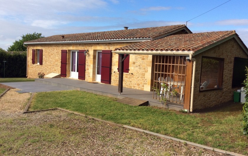 Située sur les hauteurs, maison avec jardin "Pech Bracou", terrasse couverte avec barbecue, au calme à proximité de la forêt, avec un beau panorama sur la campagne.