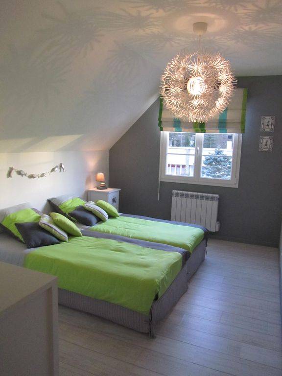 A l'étage se trouve 2 grandes chambres dont une avec balcon, mini salle de jeux.