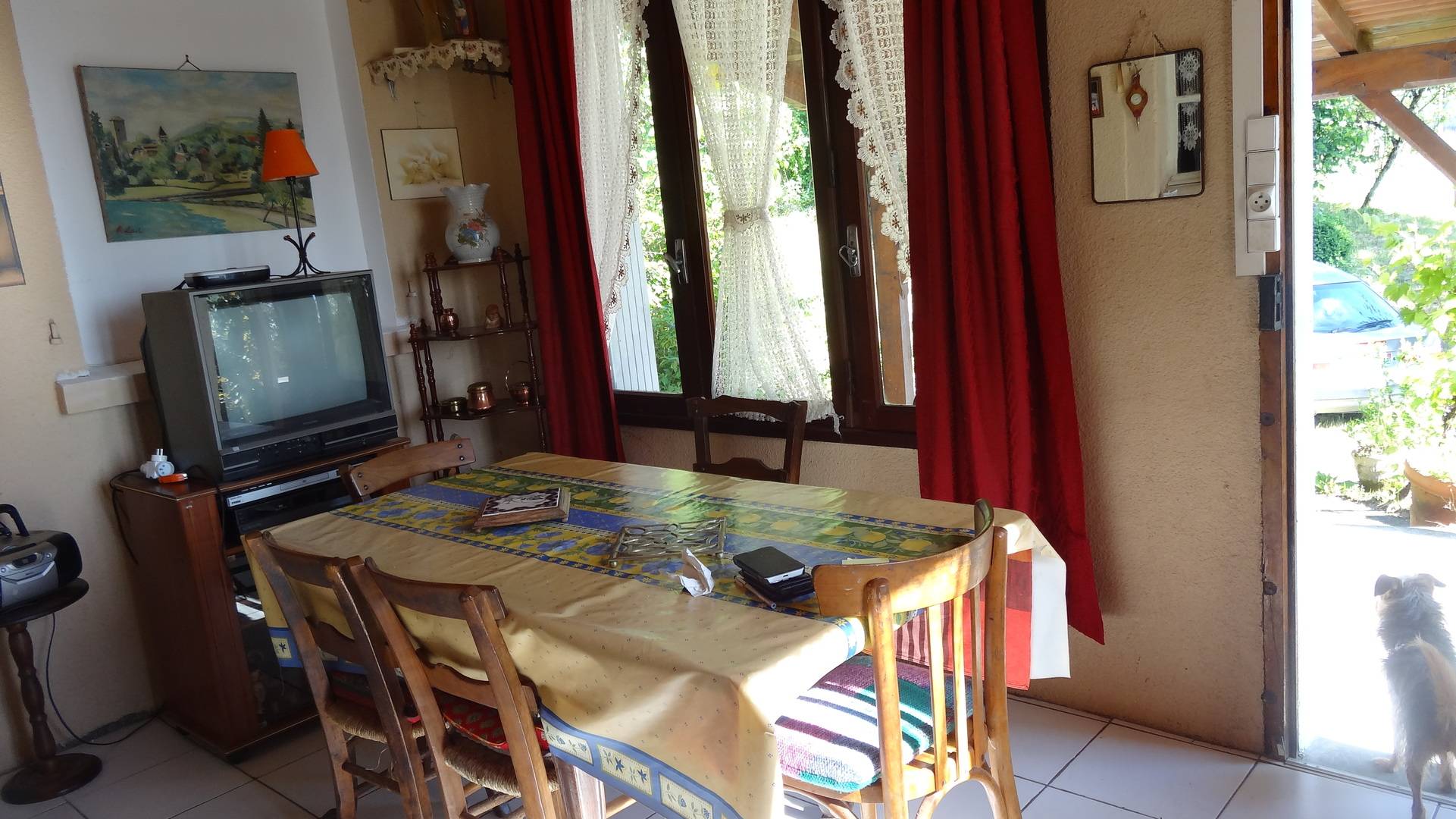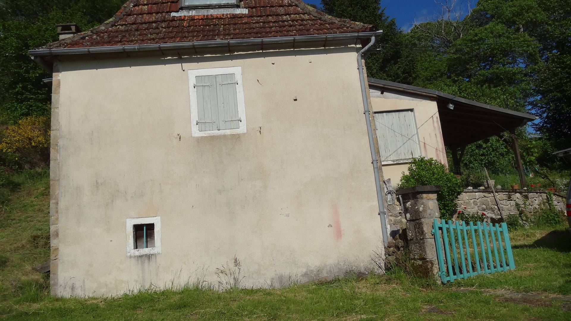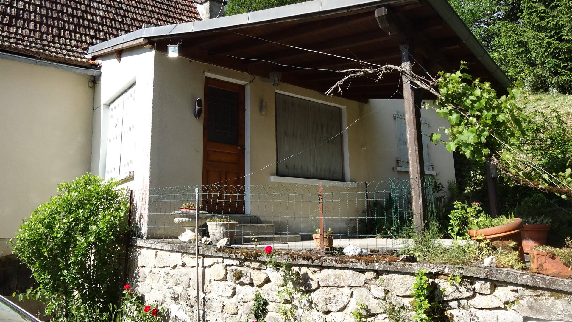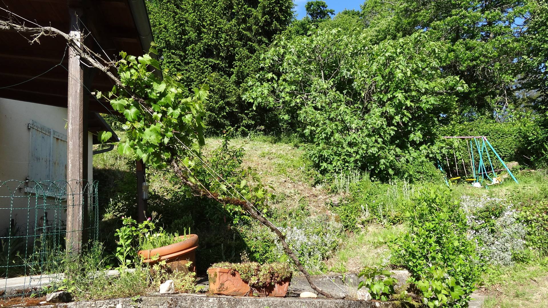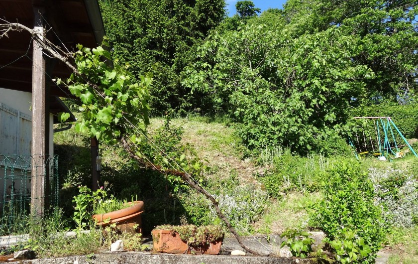 Terrasse avec mobilier de jardin; portique pour les enfants; garage en bois pour une voiture; espace extérieur clos par un portail. Cave fraîche. Petit barbecue.