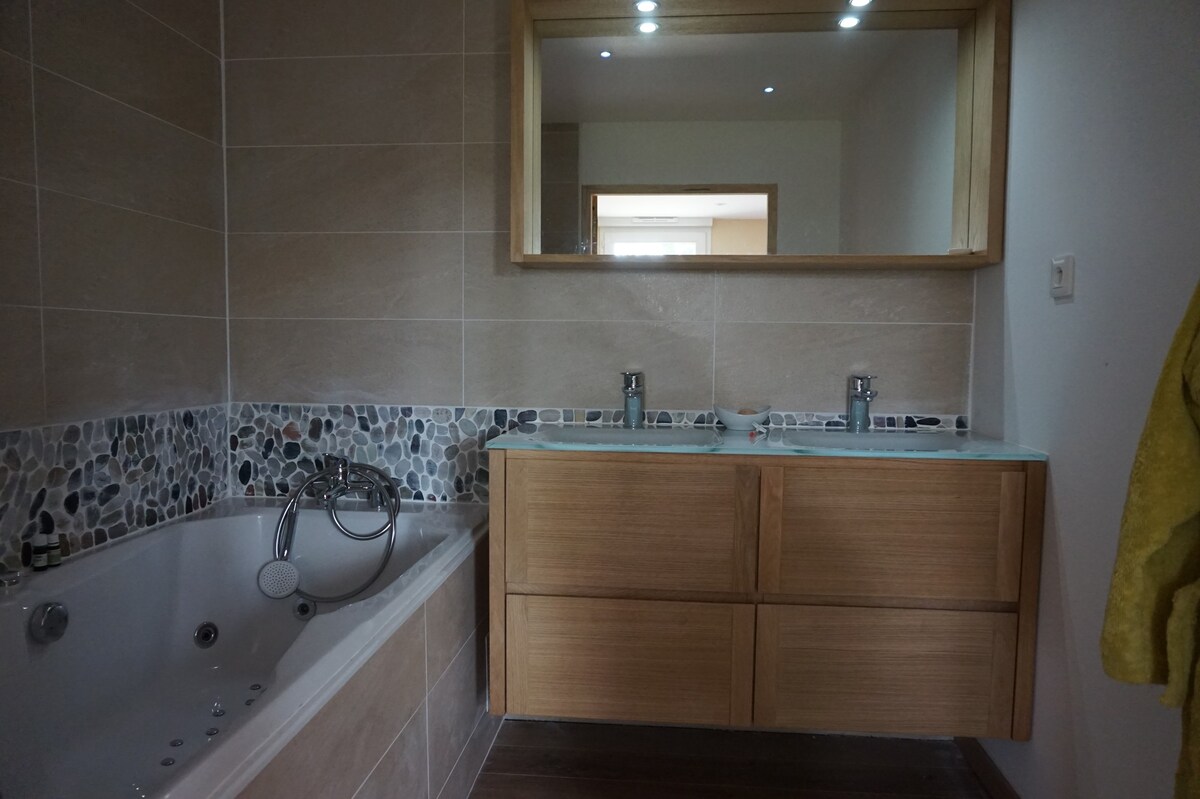 avec une vasque pour se laver les dents et un couloir privatif pour accéder à la salle de bain de l’étage. Une 3eme chambre parentale avec double vasque (le lit de couple est sur une belle mezzanine - 1 lit simple est dans la même chambre). Une "chambre perchée" de 15 m2 avec 3 lits individuels. Une petite "chambre grenier" mansardée avec deux lits. Un tapis de course technogym. Chromecast pour regarder votre abonnement Netflix ou autres sur la tv du salon. Des jeux extérieurs (Jeu d'échec géant, ping pong, panneau de basket). Des jeux de sociétés et des livres ou revues (science et vie junior par exemple) pour vos enfants.