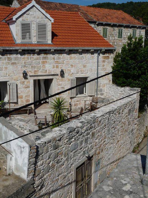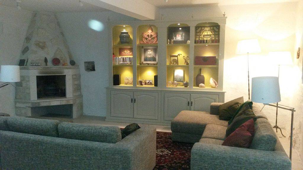 - la "konoba": équipée d'une cheminée, elle sert de salon avec ses vastes canapés et de salle à manger quand on ne mange pas dans la cour; sa fraîcheur est bienvenue en été.