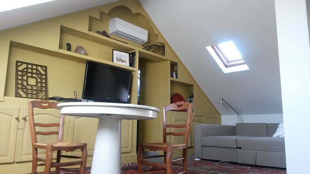 L'Attique : 1 chambre avec air conditionné, 1 salle de bain avec baignoire et WC, accès à la terrasse nord; lit "dalmate" (1personne et demi) et un canapé convertible.
