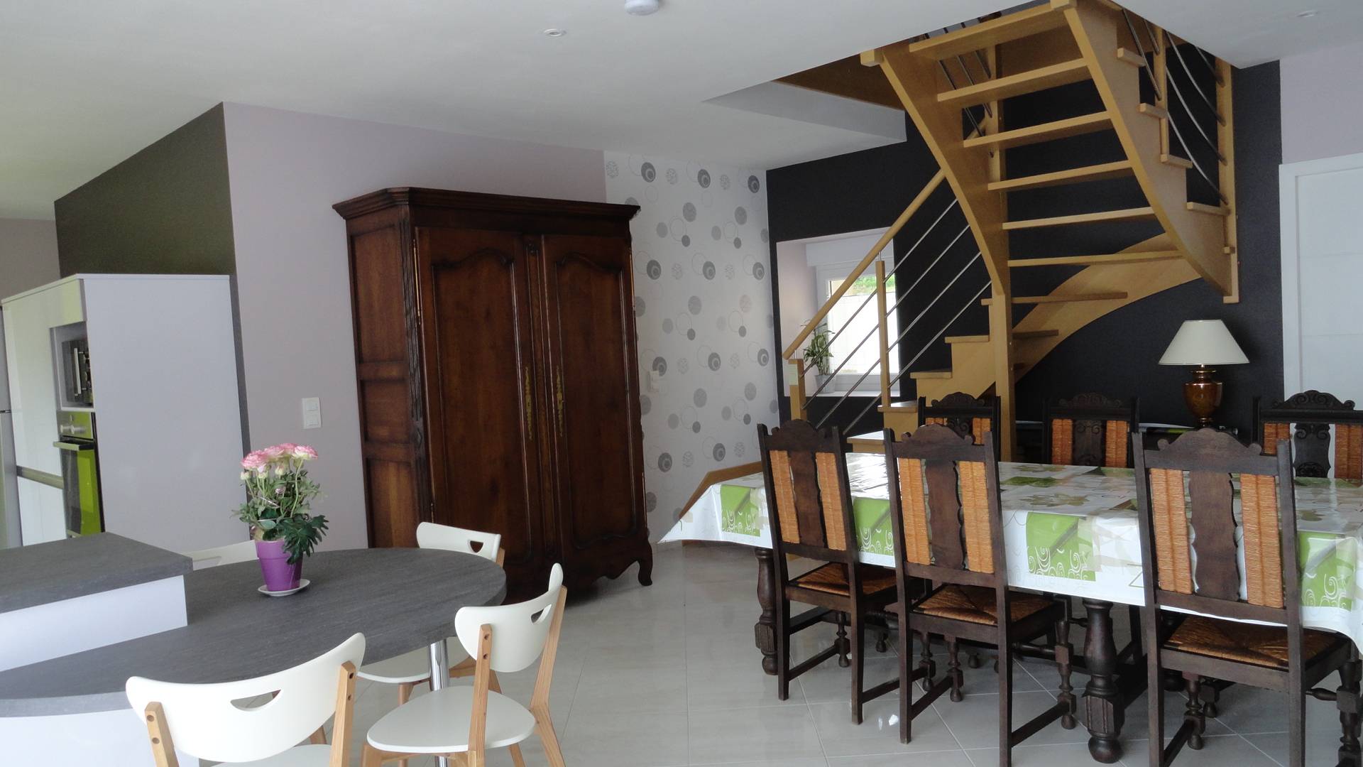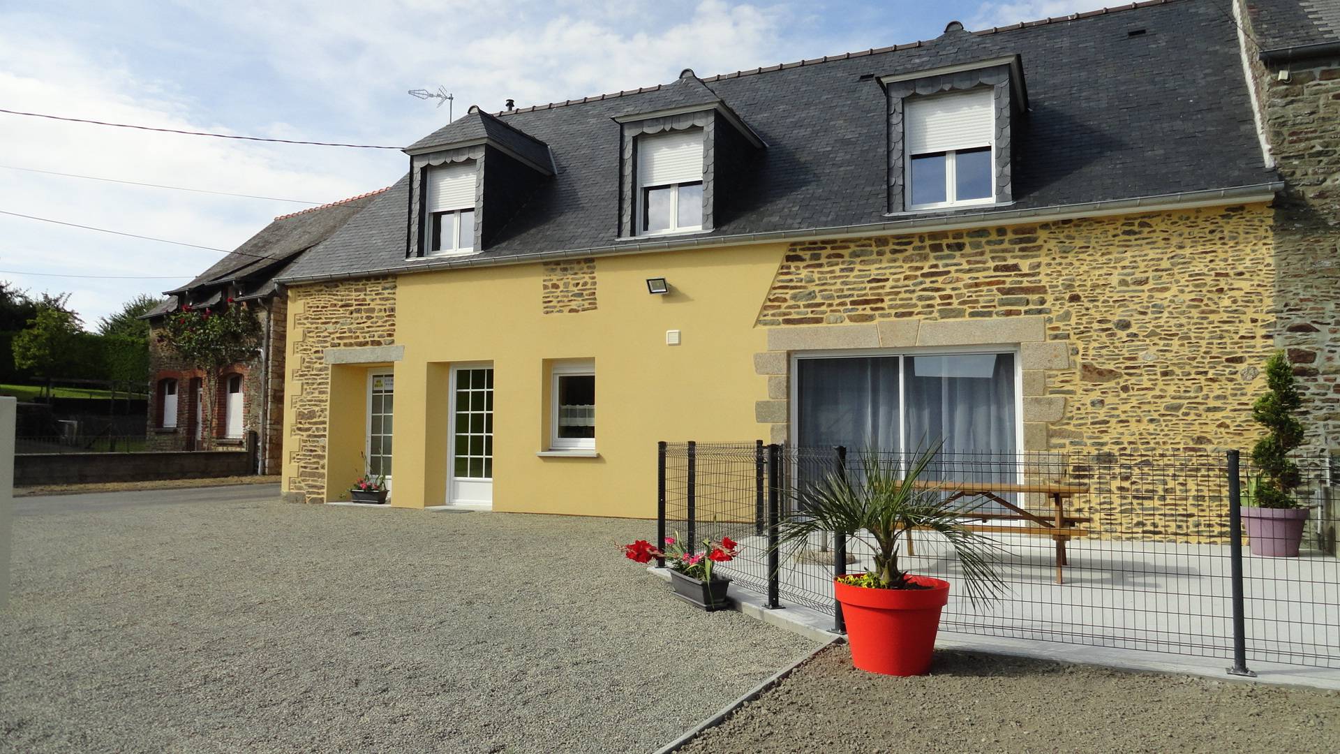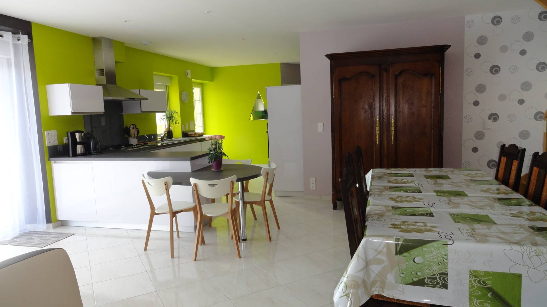 Gîte situé au 4, le Bois Bourdin 50170 VESSEY – à la campagne – capacité 13 personnes – 140 m² - cuisine équipée (lave-vaisselle, micro-ondes, four, 2 frigos avec partie congélateur) / TV / lecteur DVD – WIFI - grande pièce à vivre – RDC : 1 chbre lit 2 personnes, 1 salle d’eau, WC pour personnes à mobilité réduite. ETAGE : 1 chambre lit 2 personnes – 1 chambre lit 2 personnes + banquette-lit 1 pers. – 1 chambre lit 2 personnes + banquette-lit 1 pers. – 1 chambre 2 lits 1 pers. – salle de bain (douche + baignoire) – WC – pour bébé lit parapluie et chaise … haute – RDC : buanderie, congélateur, table à repasser + fer – garage porte électrique pour voiture + vélos – terrasse / salon de jardin / barbecue - rénové – état neuf - coin pelouse sur arrière clôturé de 500 m². Situation géographique : à l’intersection entre Saint Malo et Granville – à 3 km de notre exploitation agricole – à 5 km de Pontorson – à 15 mn du Mt St Michel – à visiter Mt St Michel, Cancale, château de Fougères, Saint Malo, Granville, les Iles Chausey, cimetière américain St James, cimetière allemand Huisnes Sur Mer –– possibilité week-end ou semaine – tarifs nous consulter – contact et réservation 02.33.60.15.45 ou 06.81.80.17.47 (heure des repas) Lire moins Lire la suite