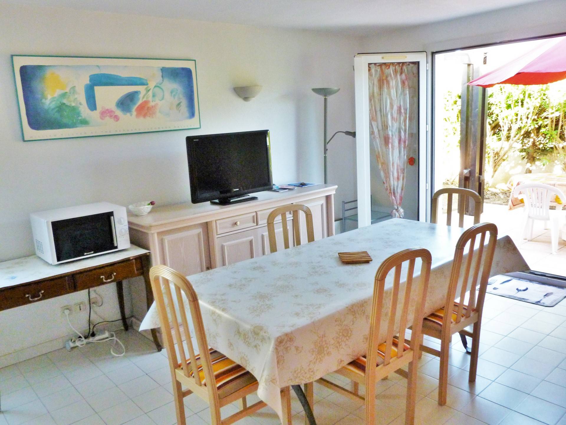 Charmante maison mitoyenne 42 m2, climatisée, dans résidence avec piscine. Location non fumeur. Chèques vacances acceptés.