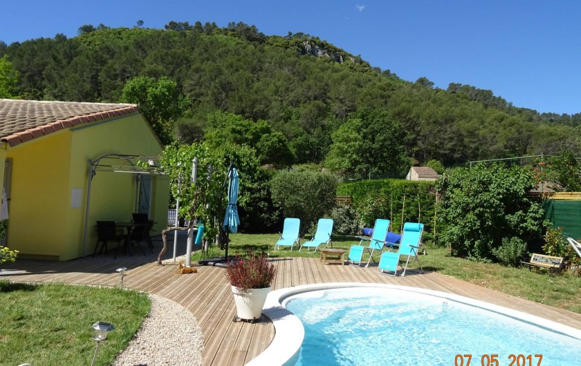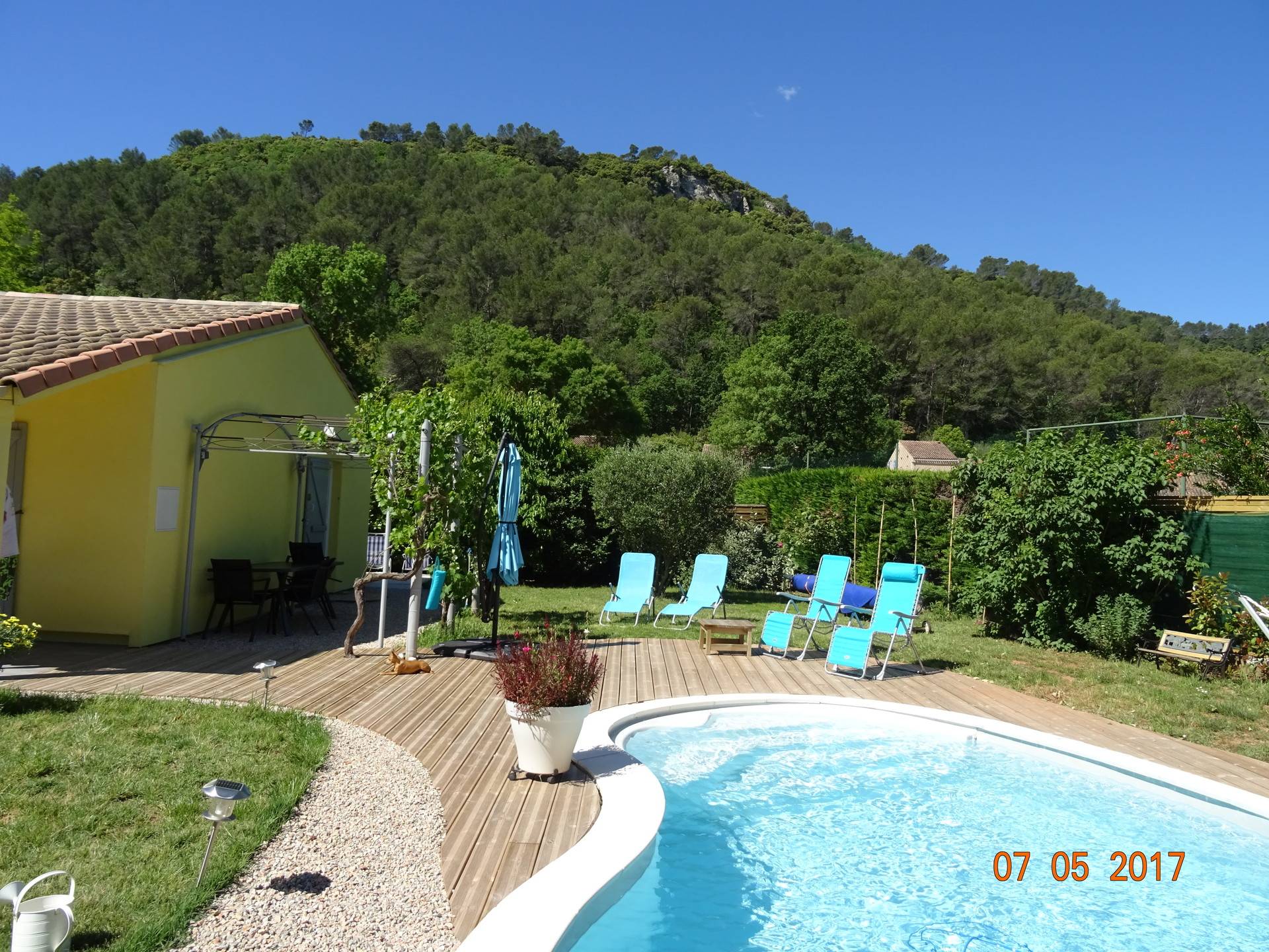 cuisine équipée avec micro onde, plaque à induction, frigo, lave linge, TV avec possibilité wifi, canapé lit 2 personnes plus 1 lit d'appoint 1 personne , linge de lit fourni, parking intérieur et extérieur, piscine 7,20 sur 4,30 mètre utilisé aussi par les propriétaires , au calme à 5 minutes du village, à 5 km du lac des Escarcès ( massif des maures) 15 km de Draguignan et 30 km de Fréjus et Saint Tropez