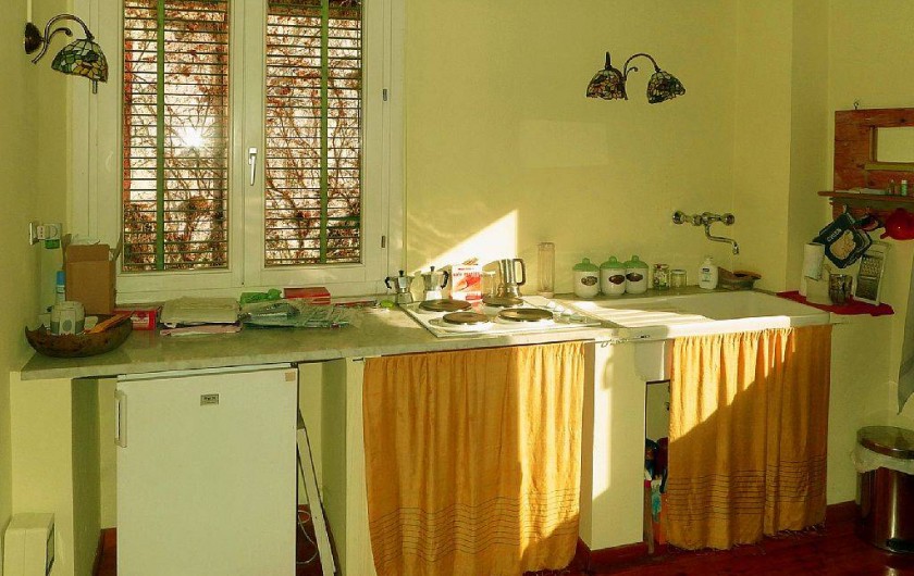 café moka de 3 et de une tasse, mixeur, presse-agrumes électrique, évier, réfrigérateur, micro-ondes, une armoire spacieuse, télévision par satellite, radio et lecteur cD. Chauffage et climatisation. Planchers de bois franc. Atmosphère agréable et unique, confortable et vécu, meubles anciens qui nécessitent une attention à côté de concevoir des objets. Accueil spécial avec tout ce dont vous avez besoin pour un petit-déjeuner et d'autres choses agréables, sans avoir à courir à l'épicerie.