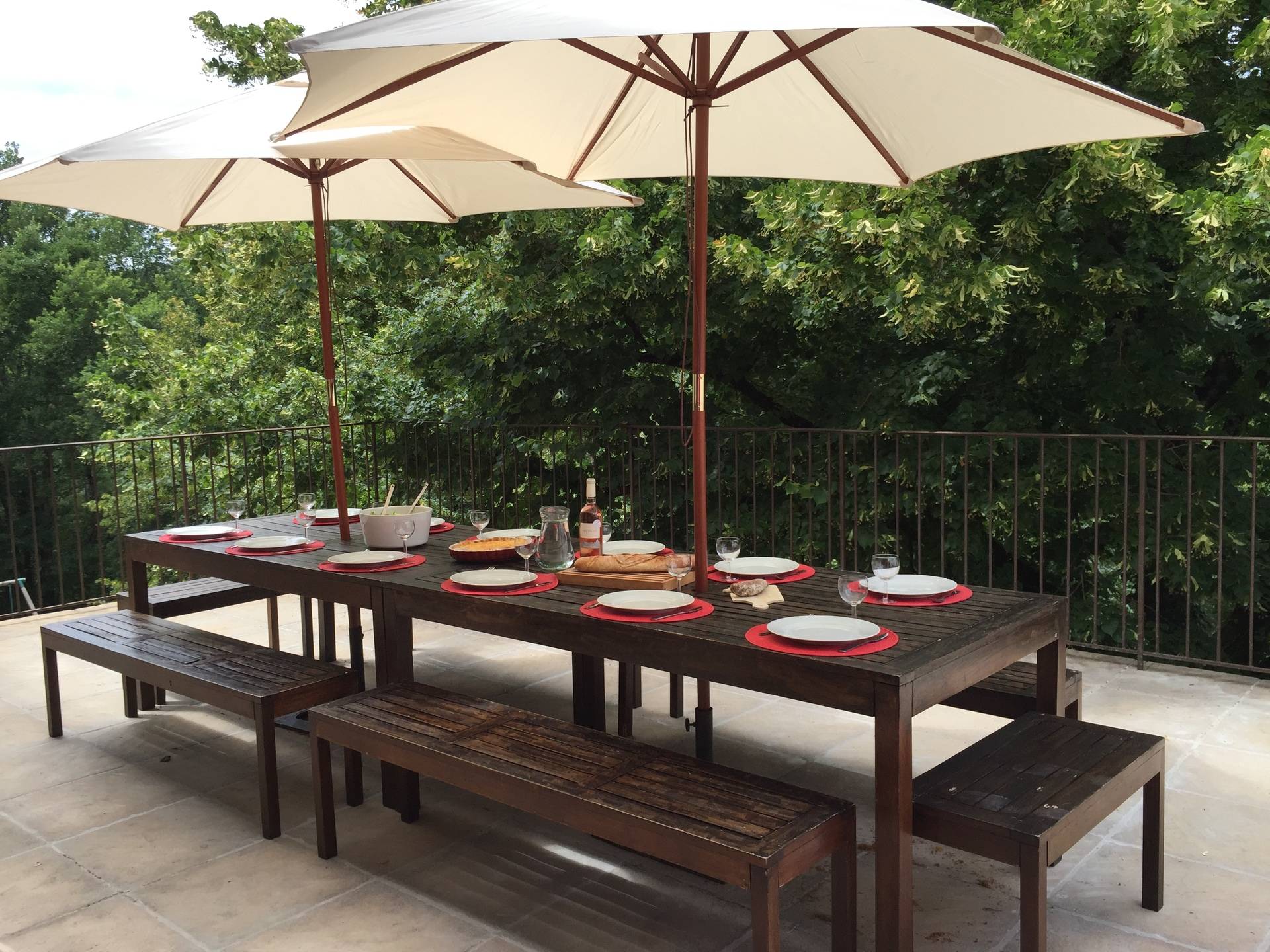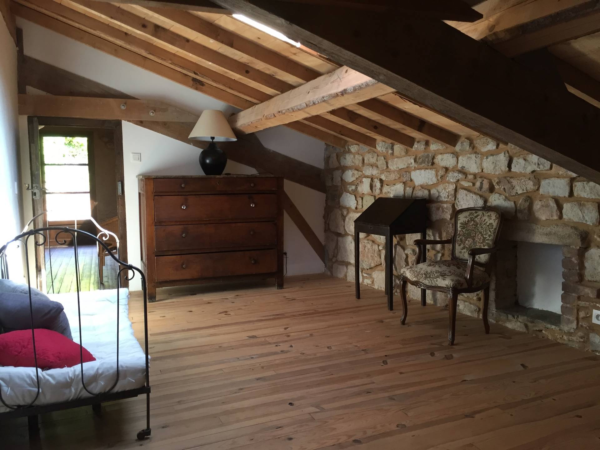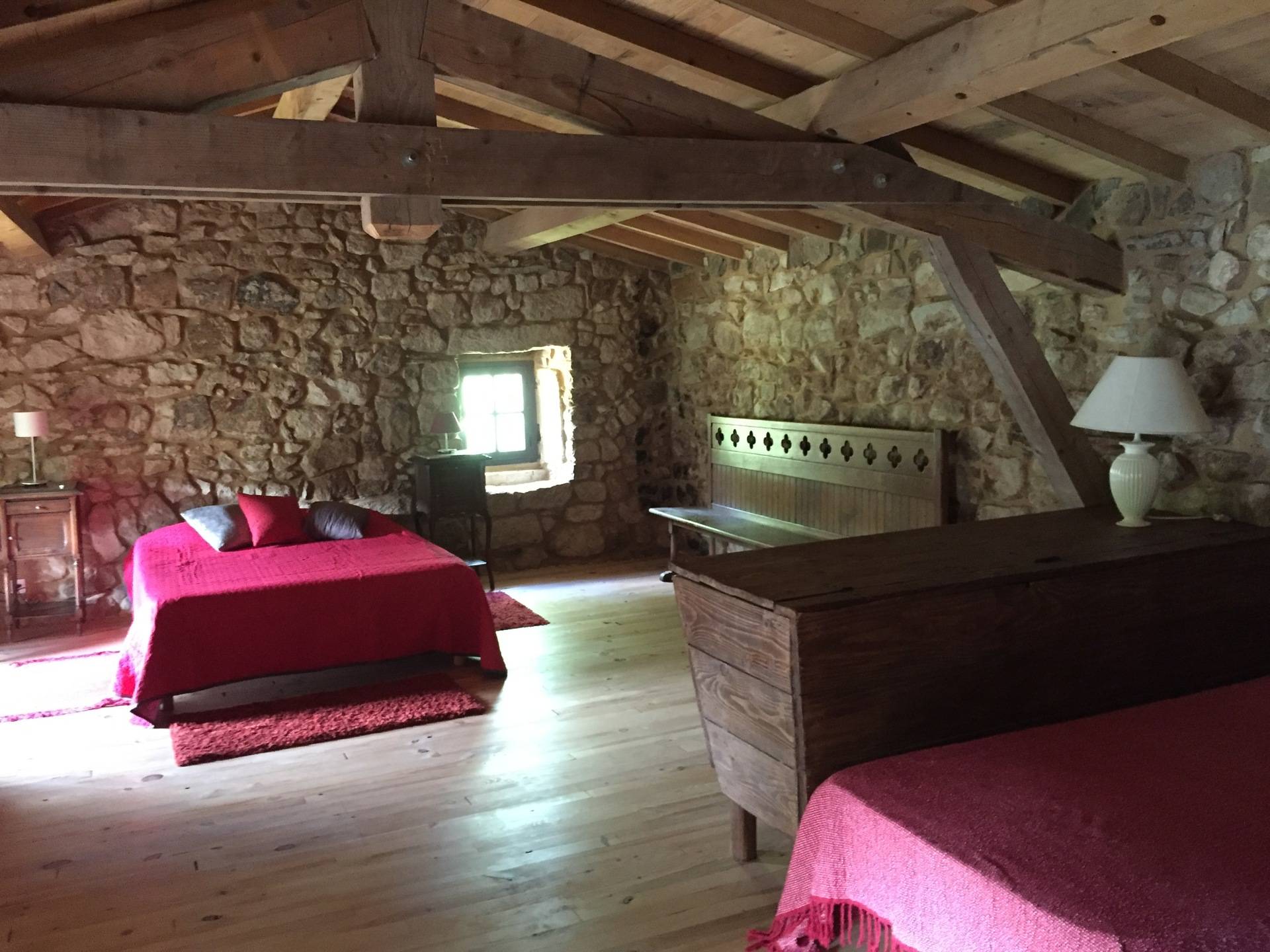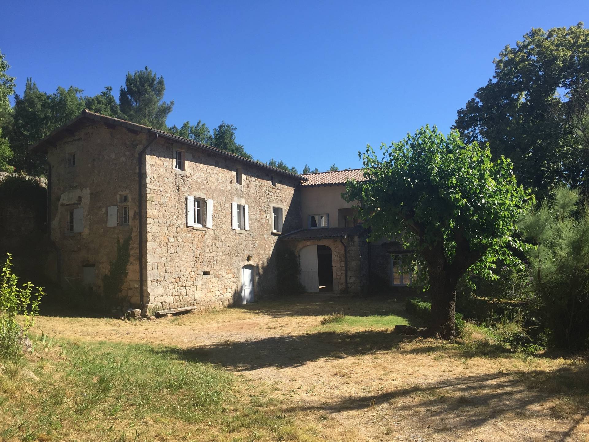 Cette très grande ferme joliment restaurée et avec goût, constitue un véritable havre de paix situé au beau milieu des vignes dans le Parc National des Monts d'Ardèche. Une belle rivière coule en bas du terrain et est aménagée d'une petite plage pour vous rafraichir lors des grandes chaleurs que connaît cette région. Deux salons, une nursery, une très belle terrasse ainsi que la piscine en sont ses principaux atouts. En pierres et poutres apparentes extérieures et intérieures cette demeure offre beaucoup d'espaces indépendants à chacun; elle est nichée sur un terrain pentu, … ensoleillé mais arboré de chênes et de châtaigniers où chantent les cigales en été. Situé en Ardèche méridionale, au sein de panoramas grandioses, le petit village fortifié de Vinezac se donne des airs de carte postale: ses pierres teintées de blanc et d'ocre orangé chatoient sous le soleil de midi, inondant de lumière le vert généreux des vignes qui lui servent d'écrin. L'air de rien, il vous entraîne dans une plongée au coeur du Moyen-âge. Attention aux petits enfants avec un bassin à poissons et une source naturelle situés sur la propriété. A quelques kilomètres de là, le Pont d'Arc de Vallon d'où vous pourrez partir faire la descente des extraordinaires et fascinantes Gorges de l'Ardèche en canoë-kayak. Aussi à ne pas manquer, la visite incontournable des fabuleux villages de Balazuc, Nages, St Thomé - à cheval, à dos d'âne, en ULM ou à pied, tous les moyens sont présents pour découvrir cette magnifique région montagneuse au climat tempéré. Lire moins Lire la suite