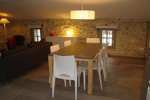 grande pièce à vivre. Cette dernière, lumineuse, est dotée d'un écran plat, d'une mini-chaîne, d'un poêle à bois pour les week-ends d'hiver et s'ouvre sur le jardin.