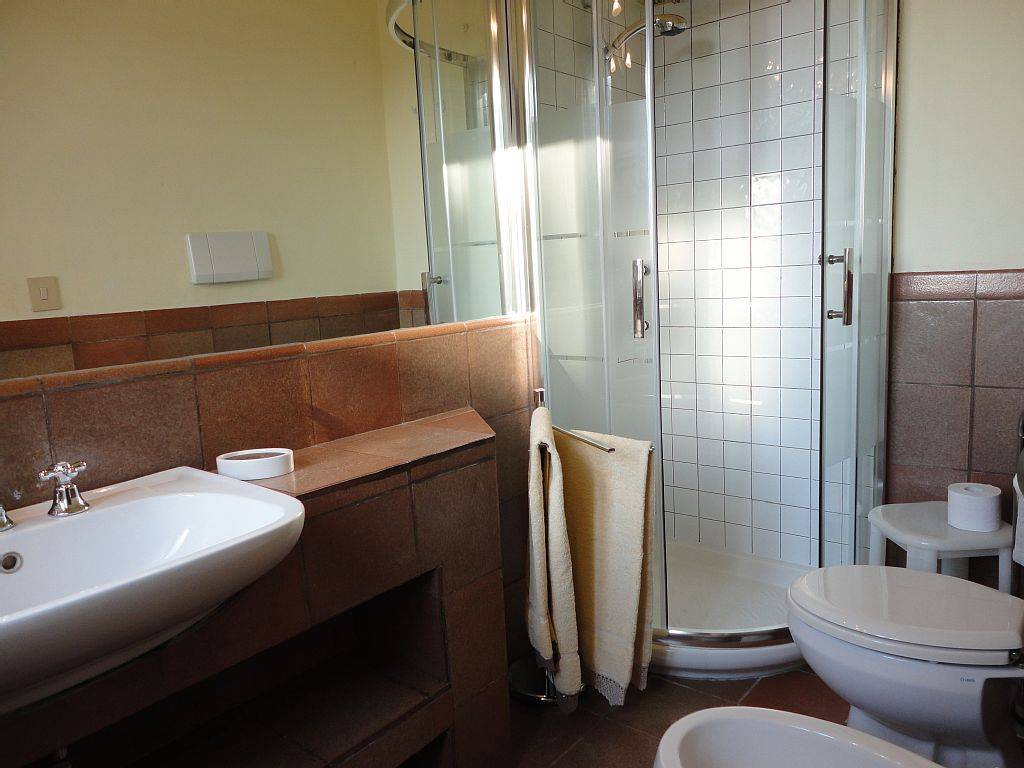 Au même étage se trouvent les 6 chambres au lit, dont 4 chambres avec lit à deux places et 2 avec lit jumeaux. Le deux chambres côté ouest ont l'accès à une terrasse (10 x 3 mt.) ornée de plantes méditerranéennes ou on peux prendre des bains de soleil. 4 chambres ont la salle de bain en-suite, les autres 2 partagent une salle commune.