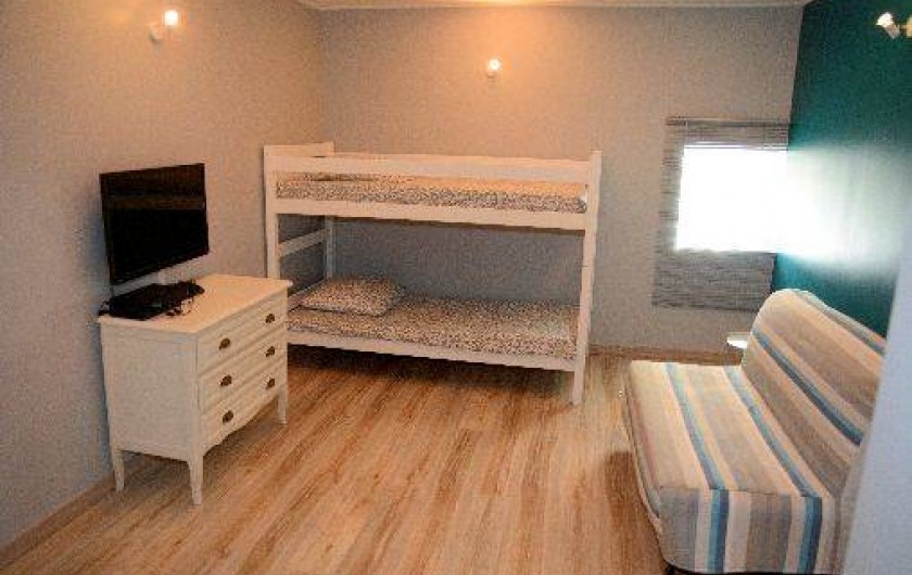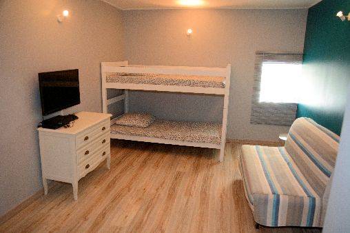Une grande chambre ' Le grenier des enfants', avec un canapé BZ pour un couchage 2 personnes (140), un lit superposé (2x90)