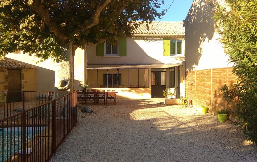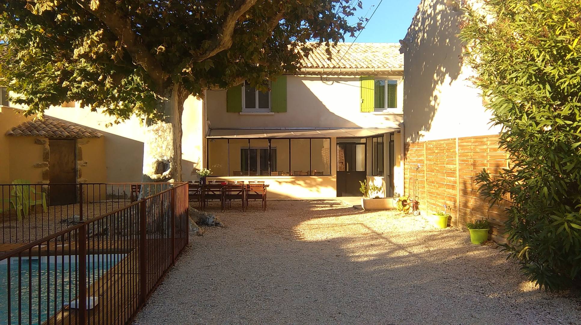 Une grande véranda de 30 m² devant les pièces à vivre du bas, ainsi qu'une grande cour clôturée d'environ 300 m², accès et parking privé