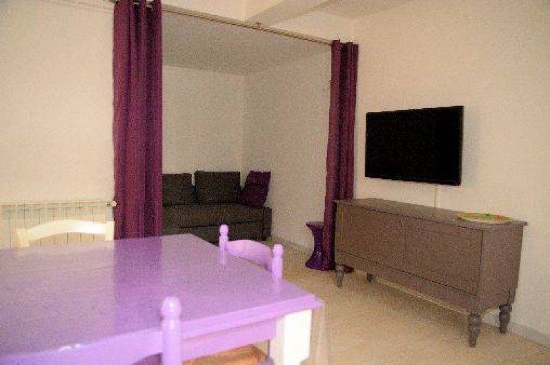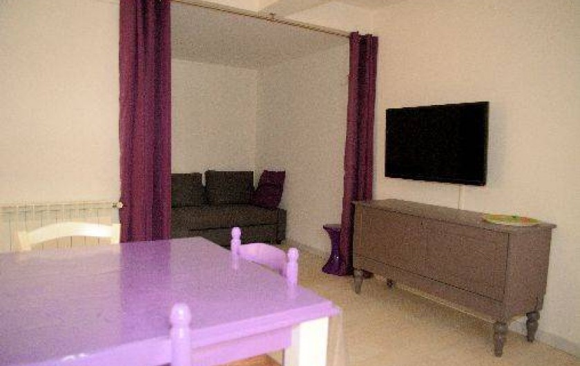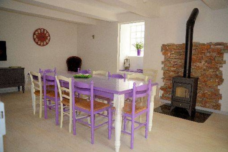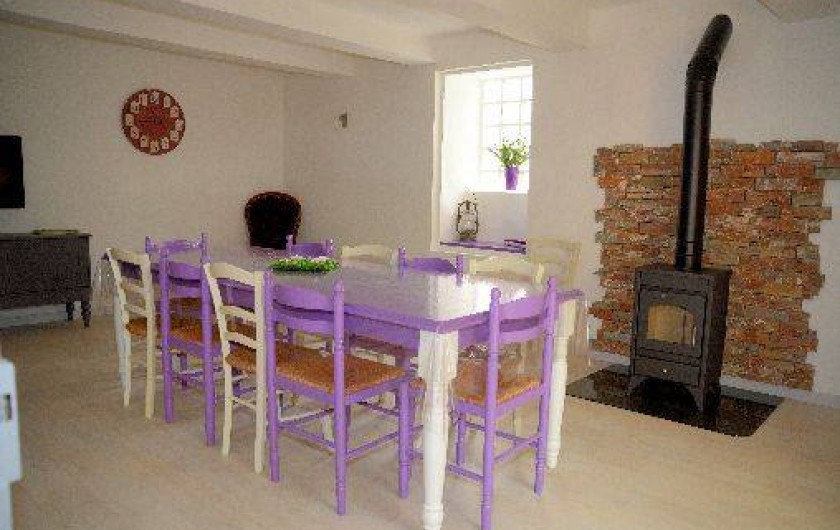 hall d'entrée, un grand séjour/salon avec écran plat, poêlé à bois et canapé d'angle convertible (140) ,