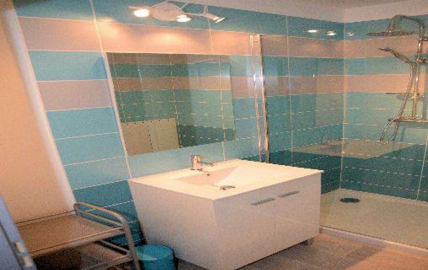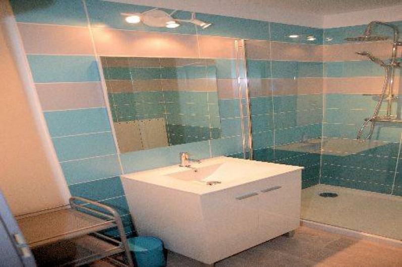 Une salle d'eau avec douche à l'italienne et vasque,