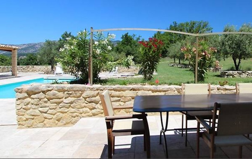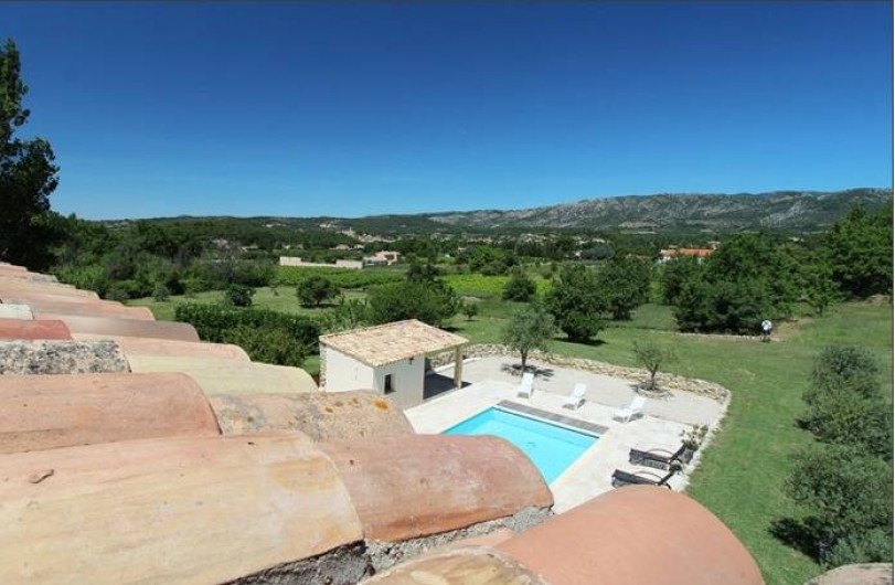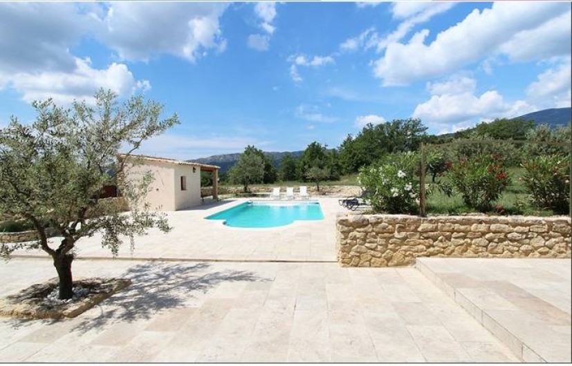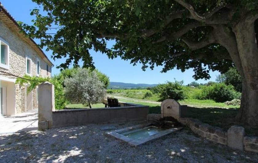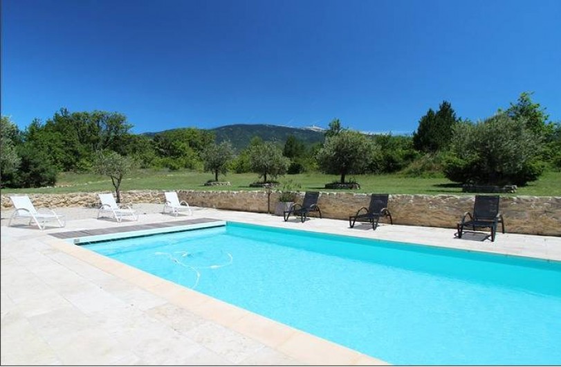 Terrain : 10 000 m² non clos. Au milieu de la pleine campagne et une vue superbe sur le Mont Ventoux. Une partie du terrain est destinée et aménagée pour le stationnement des voitures. Le côté piscine est lui réservé à la détente, aux jeux et au repos.