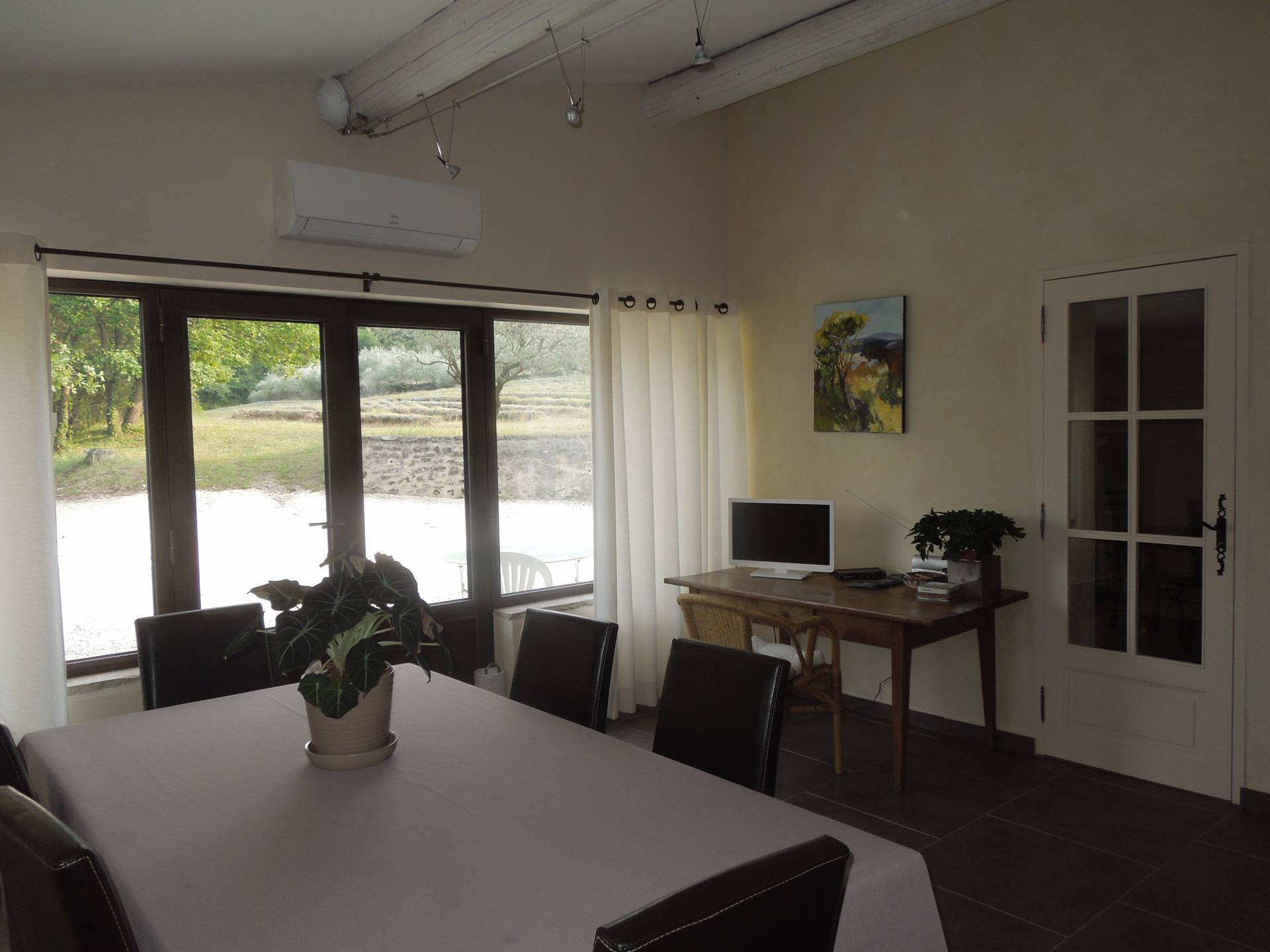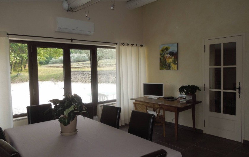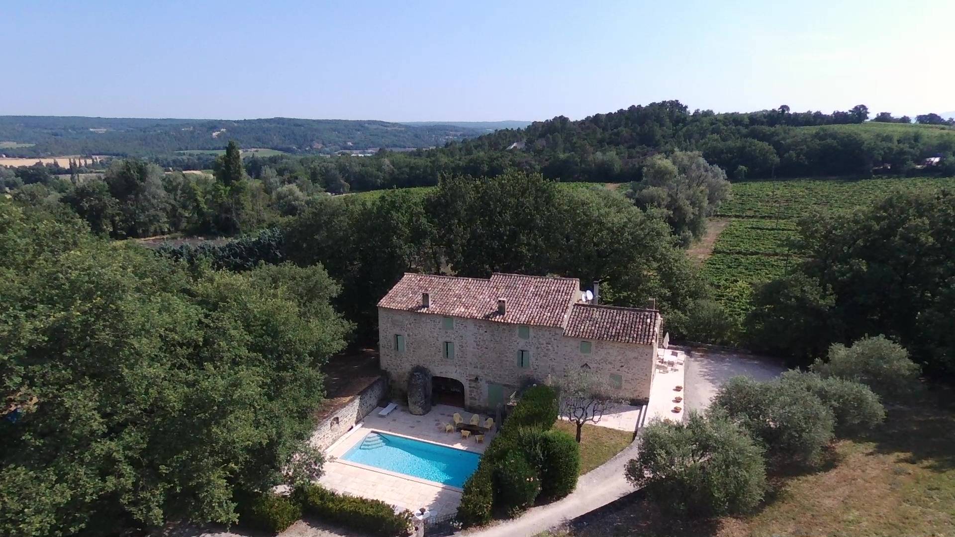En Drôme provençale, notre mas authentique (ancienne ferme du début XVIIIe restaurée) vous offre tout le confort, dans un cadre magnifique. Situé à l'écart d'un petit et sympathique village, vous pourrez apprécier le calme et l'environnement. La maison est entourée de bois de chênes, de vignes, de champs de lavande et de chênes truffiers, sur un terrain de 3 hectares. Un portail automatisé en ferme l'accès.
