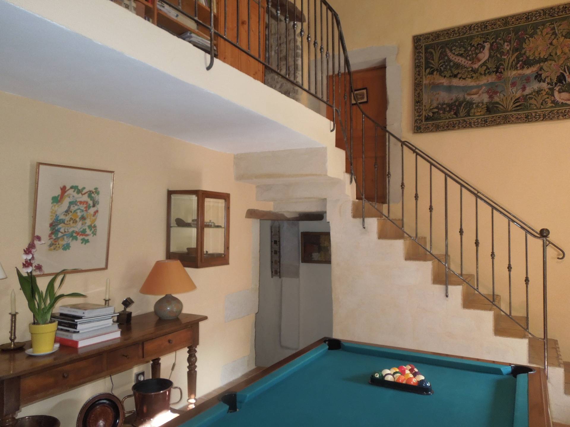 La maison est sur 3 niveaux. Au 1er, vous trouverez un salon, une salle à manger, une cuisine, une chambre avec lit double en 160, une salle de douche avec WC, une salle de billard, l'accès à deux terrasses