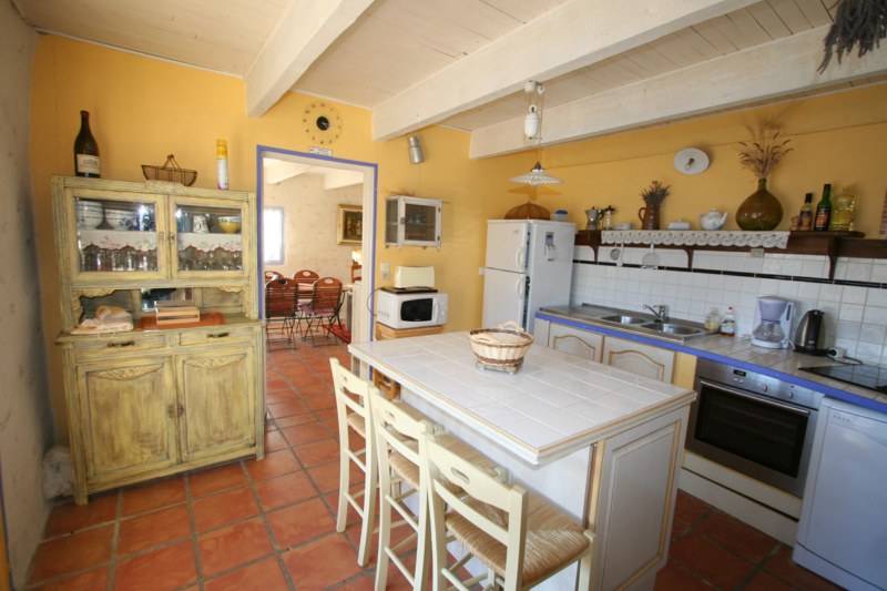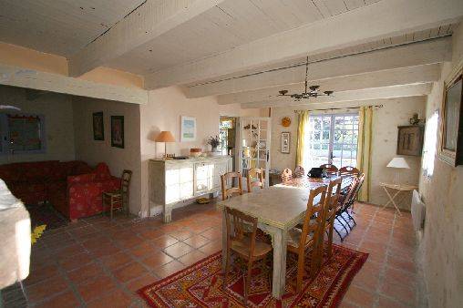 Séjour avec coin salon et cheminée, cuisine équipée, 4 chambres dont 1 située en rez de jardin avec salle d’eau, 1 salle de bains et 2 wc.