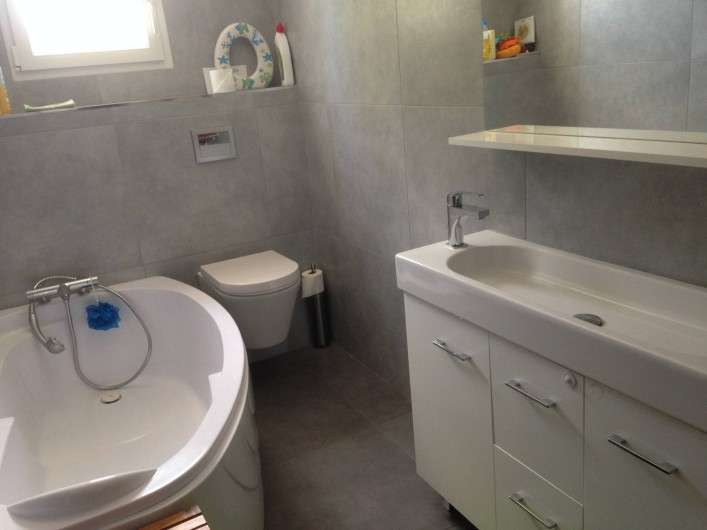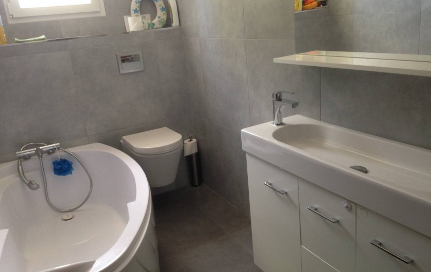 3 chambres de plein pied dont une suite parentale (literie tempur 160 x 200) avec douche italienne, Vasque, et WC, les deux autres chambres bénéficient d’une salle de bain commune (baignoire, double vasques,