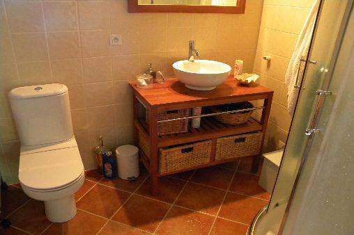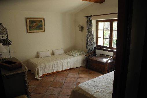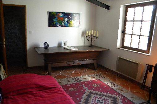 A l'étage: une chambre parentale avec lit-double, une chambre avec deux lits, une salle de bain avec WC.