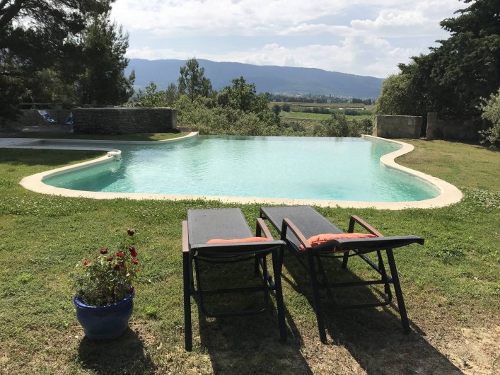 de forme libre mesure 9mx13m. Sa terrasse couverte, son grand jardin et sa vue dégagée sur le Mont-Ventoux