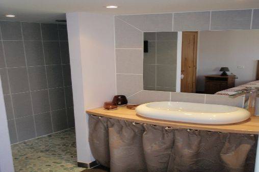 Au Rez-de-chaussée, une première suite parentale, vous offre le confort d'un lit en 140 et d'une douche à l'italienne multi-jets, en pisé. Les W.C. sont séparés.