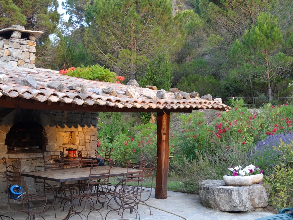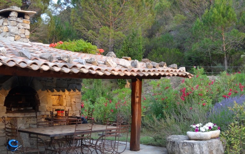Devant la maison il y a un four à pain. Sur le patio de devant il y a une grande table en orme avec des chaises, emplacement idéal pour le petit déjeuner.