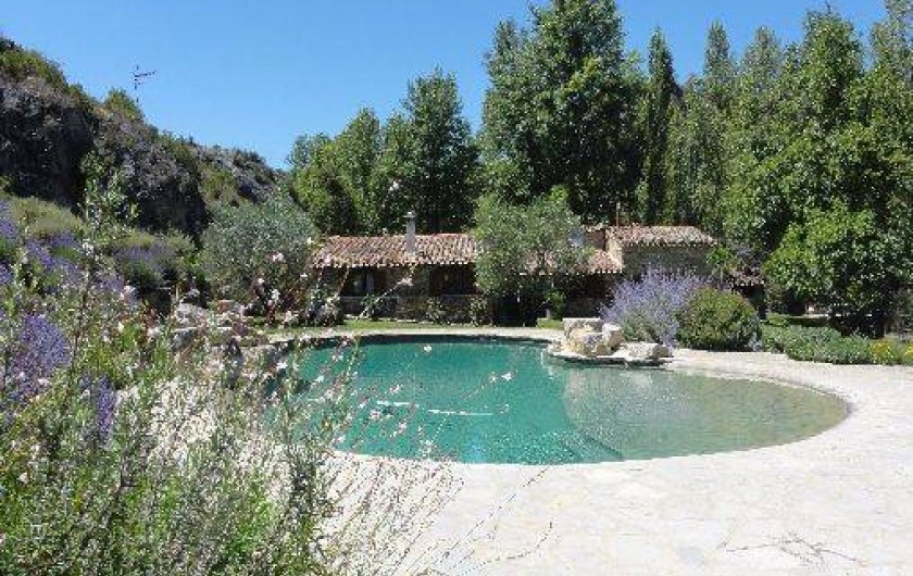 La Rivière est une ancienne bergerie toute en pierres, style mas du Languedoc, sans vis à vis, au bord d'une petite rivière sur 6000 m2 de terrain dans une nature splendide tout autour. La grande piscine de 14 m de long aux formes arrondies et de couleur naturelle s'intègre parfaitement dans ce site dolomitique magnifique.