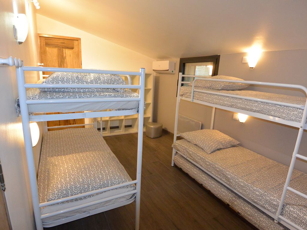 Une chambre est prévue pour que les enfants puissent dormir tous ensemble (6 lits superposés + lit d'appoint si besoin).