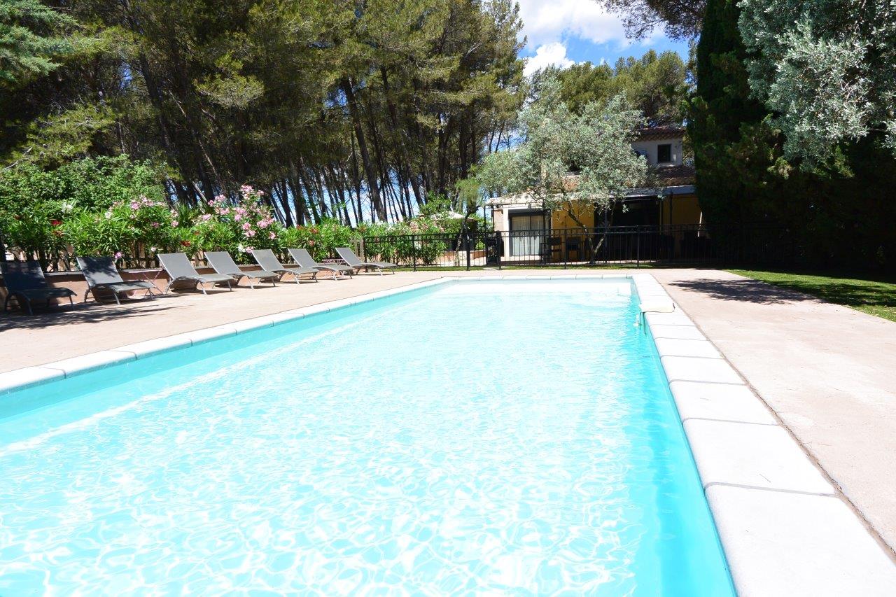 La piscine est exposée plein sud mesure 9.5 m X 4 m, elle est en pente douce et est équipée de bains de soleil. Elle est chauffée d'avril à début octobre selon la météo.