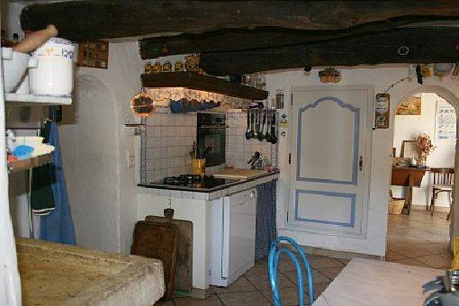 - la cuisine est parfaitement équipée. Tous les éléments y sont encastrés (fours, frigo américain) dans les épais murs de la maison.