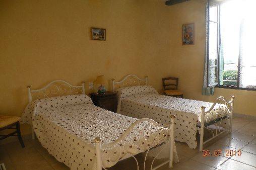 Mas provençal 4 personnes : entrée indépendante et porte d'accès donnant sur une cour clôturée en commun avec les propriétaires disposant d'un accès à la piscine et jardin ombragé avec table, fauteuils et barbecue pour repas à l'extérieur. Divers : enfants bienvenus, animaux non admis, fumeurs acceptés, pas d'accès handicapé.