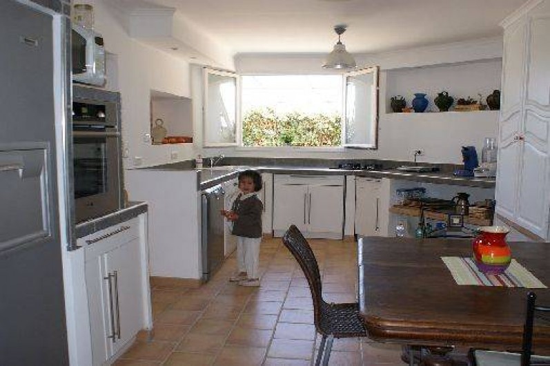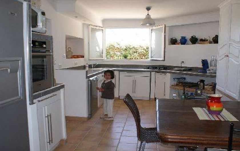d'une grande cuisine toute équipée (frigidaire et congélateur américains, four, lave vaisselle, lave linge etc)