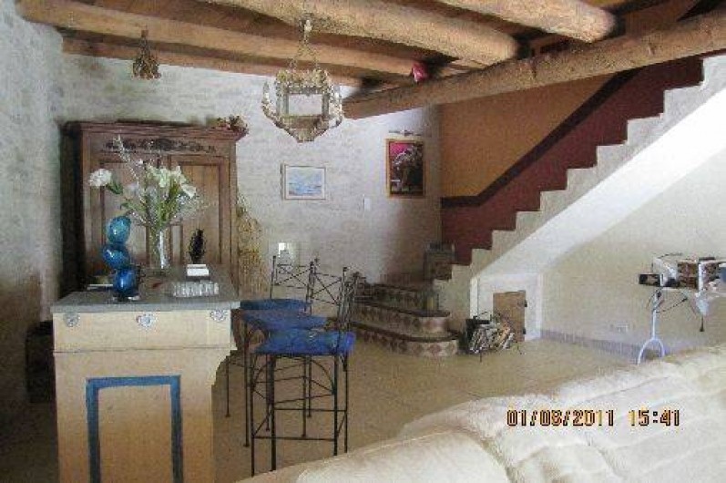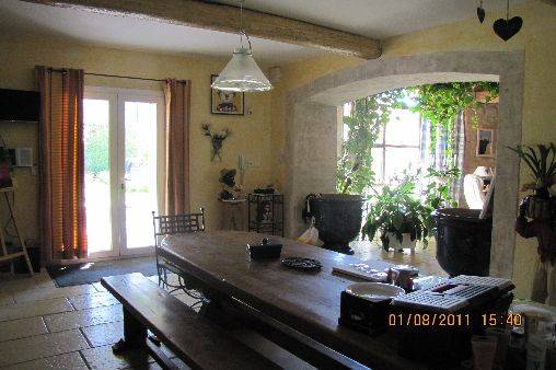 plafond tout en bois, grande cheminée provençale, canapés et coin bar.1 salle de sport.