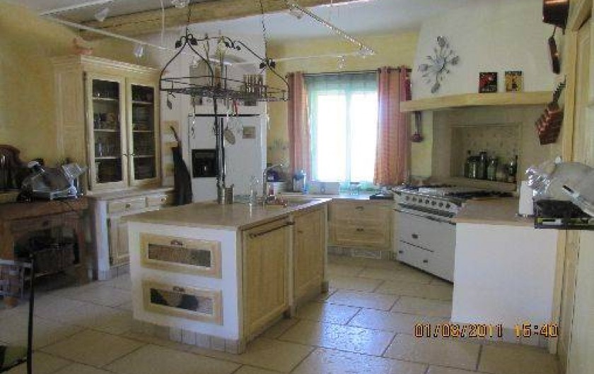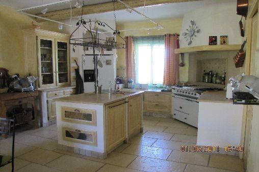 A l'interieur; cuisine ouverte entièrement équipée avec cuisinière Lacanche, frigo americain, lave vaisselle, donnant sur une grande table familiale.