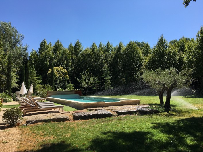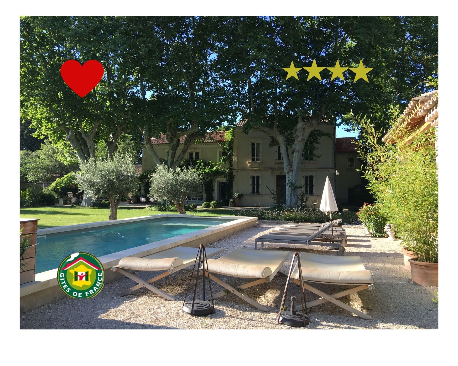 Le mas d'un superficie de 400m2 environ sur un terrain de 5000m2 est un ilot de calme et de verdure. Le mas des Pampres offre de très belles prestations, 7 chambres joliment décorées, et 5 salles d'eau dont 3 privatives, un grand salon agrémenté d'une cheminée qui s'ouvre sur la terrasse sud, une grande salle à manger avec son coin bar, une
