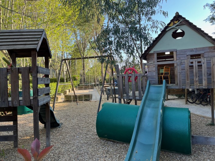 A l’extérieur de nombreux espaces ombragés, cabanes d'enfants, toboggans, trampoline, balançoires, vélos karting et tracteurs à pédale, terrain de pétanque, table de ping pong, piscine et terrasse permettent de préserver l'intimité de chacun ou au contraire de rassembler les uns et les autres pour jouir pleinement des vacances en famille et entre amis.