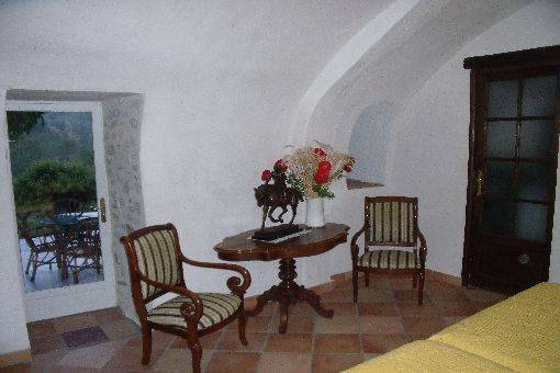 ouvrant sur terrasse couverte, salle à manger voûtée, 2 chambres voûtées ouvrant sur terrasse ombragée, chacune avec salle d'eau/wc privative; à l'étage, bureau, salon cheminée ouvrant sur terrasse partiellement couverte, 2 chambres et 2 salles de bains/wc.