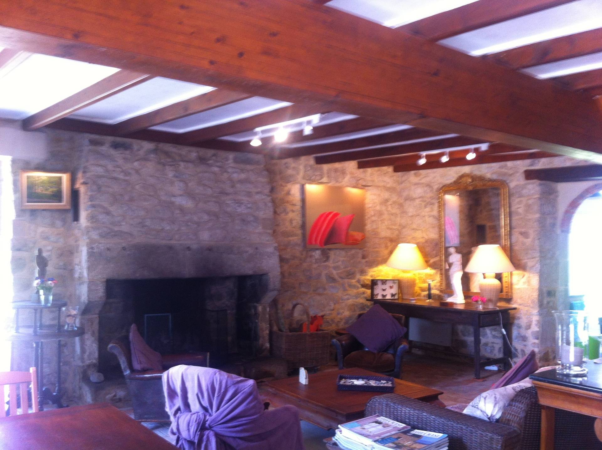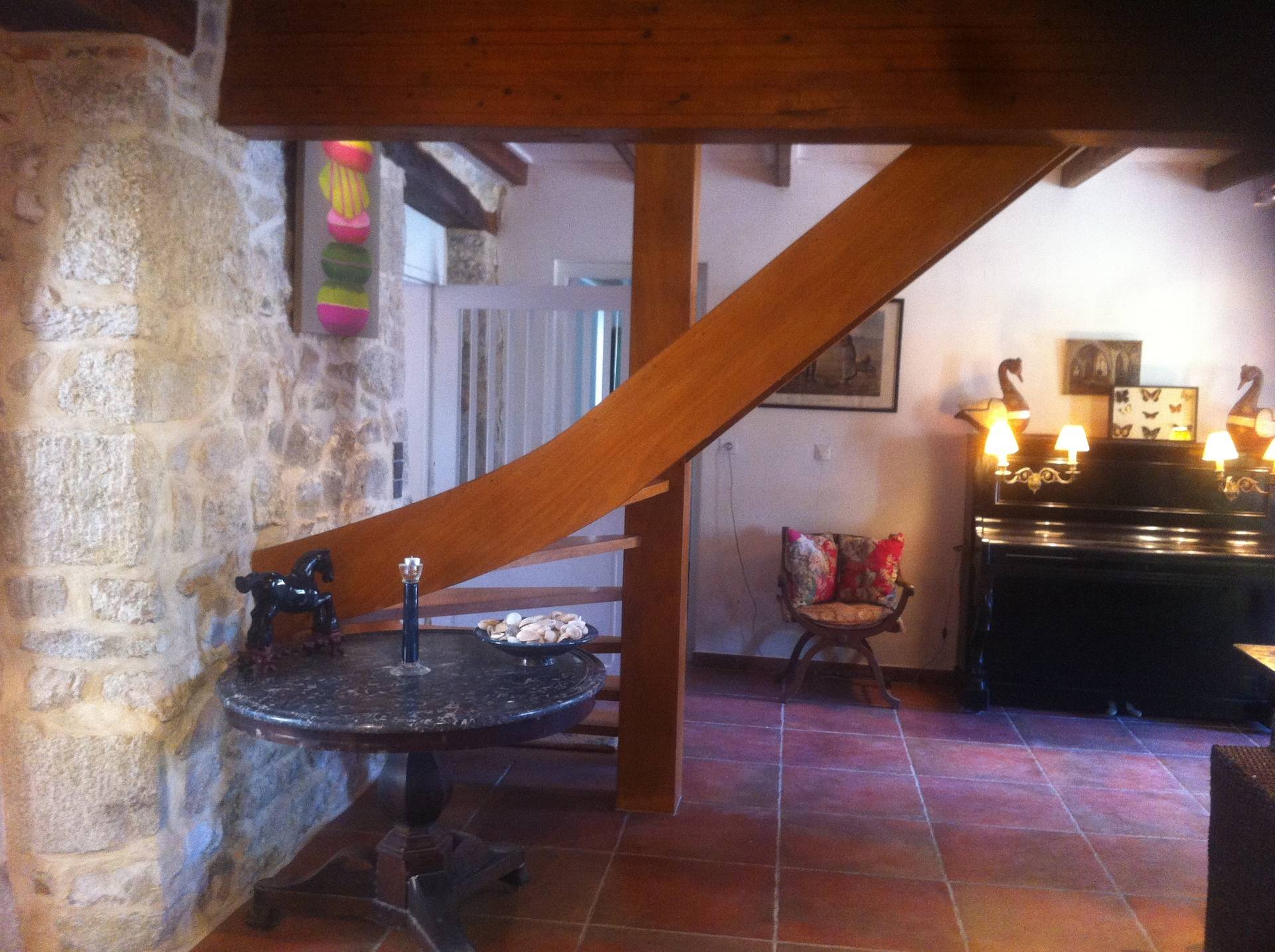 La décoration est de qualité et faite de meubles de famille et d'objets originaux chinés, sols en terre cuite, murs de pierres et grande cheminée.