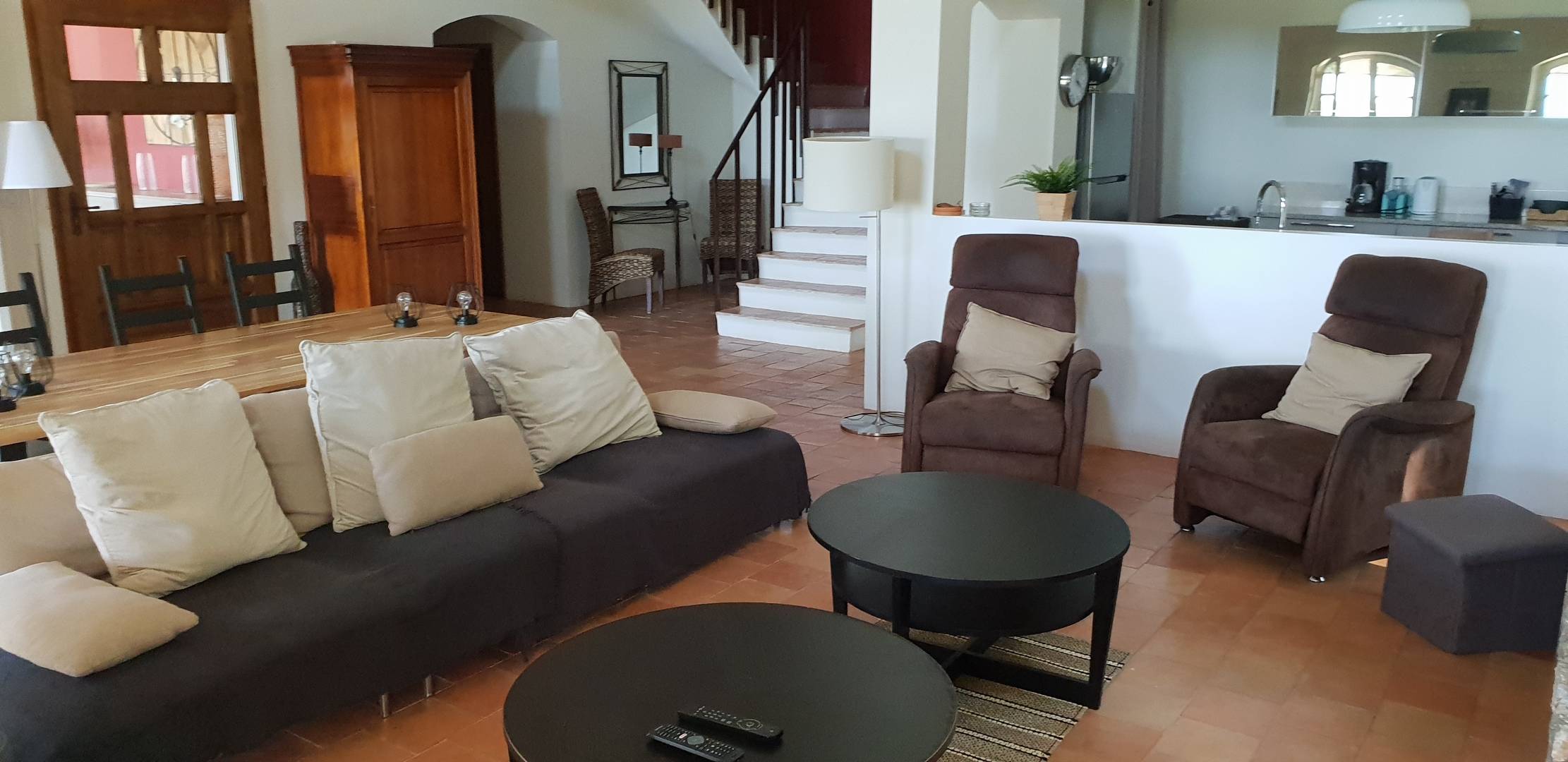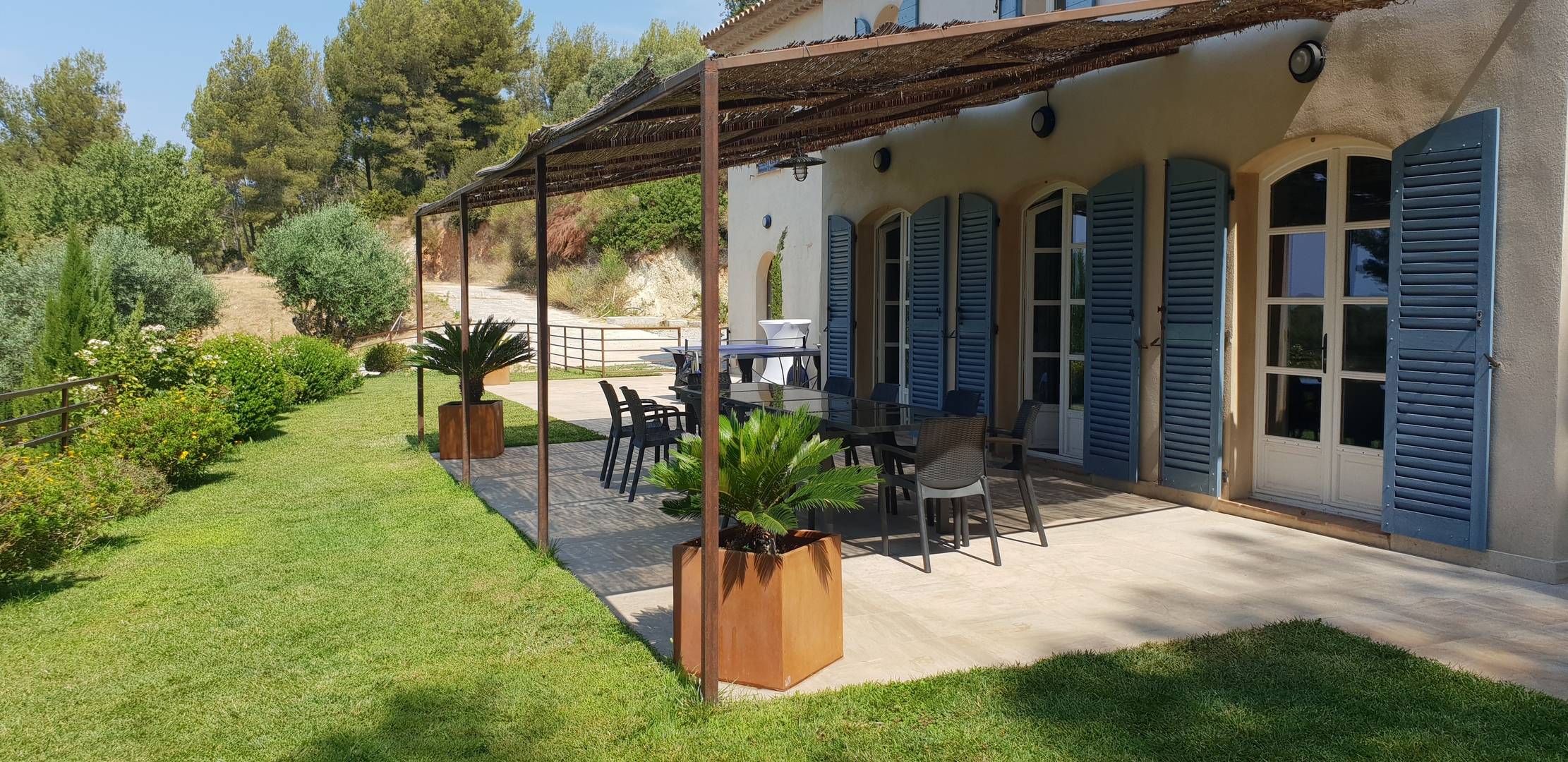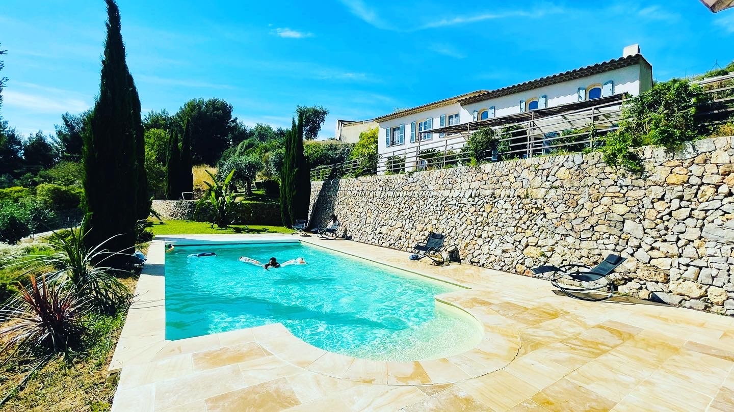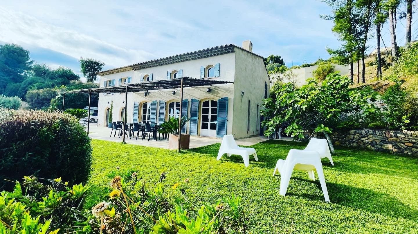 MAGNIFIQUE VILLA 10 PERSONNES VUE MER SPLENDIDE AVEC TRES BELLE PISCINE, ON EST SUR UN PRODUIT PREMIUM 5chambres composées de 3 suites et 2 chambres avec 1 salle de bain. terrain situé au milieu de la pinède au grand calme, très grande terrasse ombragée avec vue mer et sur le vignoble de bandol. Grande cuisine, salon à part et belle salle à manger. Piscine 5 par 10, Plage à 4kms.