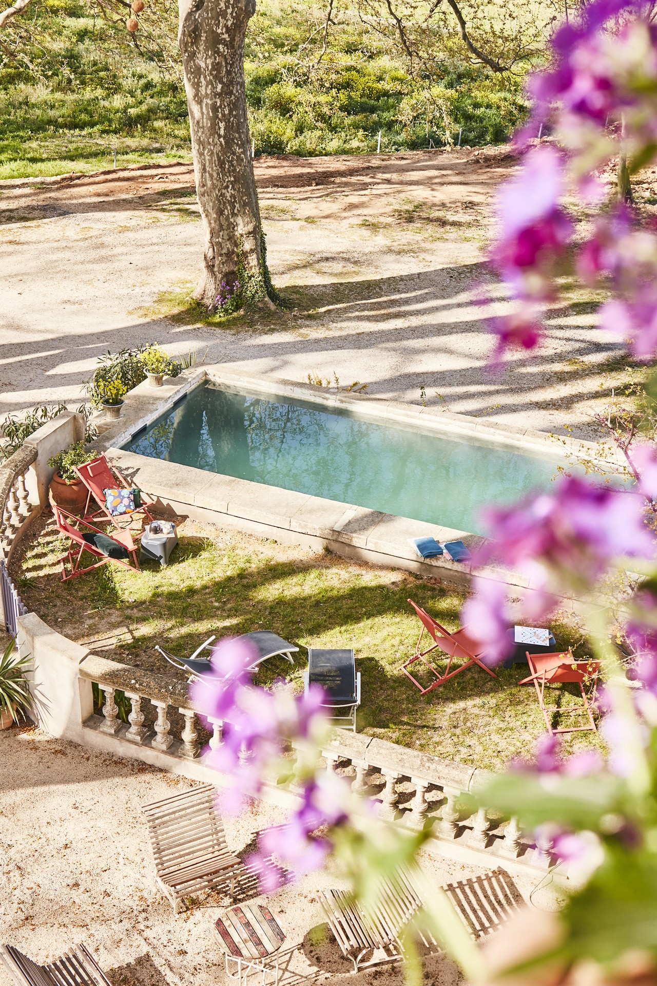 La bastide se trouve au milieu d'un grand parc boisé et des champs de vignes et de lavande. Vous aurez accès à une piscine bassin à l'ombre des platanes centenaires, à des transats pour lire tranquillement et prendre un bain de soleil et à un grand barbecue et une plancha pour vos repas. On a même pensé à mettre à votre disposition