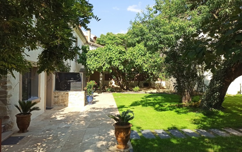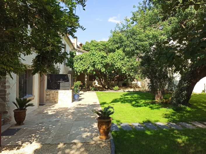 dans un site classé, au pied d'un village médiéval, face au parc du château de Vézenobres (labellisé en 2011 plus beau village de caractère) ,nous vous proposons 3 gites de charme rénovés en 2009 dans une grande maison de maître ayant ses entrées indépendantes et rejoignant de grands jardins en communs à la maison d'une surface habitable de 300 m2.une piscine sécurisée et une grande terrasse pouvant recevoir 15 personnes environ.
