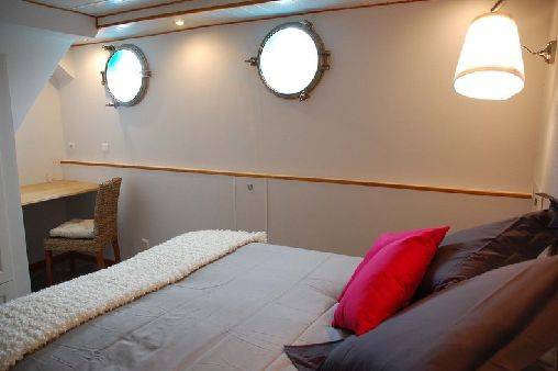 Pour des nuits calmes et confortables, deux chambres confort vous accueillent éclairées par deux hublots en bronze ouvrants.