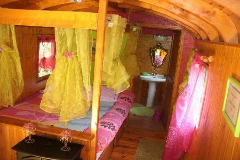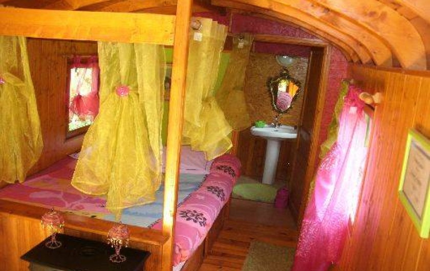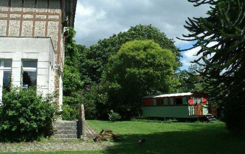 Venez passer quelques jours de bohème dans une roulotte tout confort située dans un parc de belle propriété. Bercés par la nature, vous découvrirez, durant ce séjour original, l'esprit de liberté qui imprègne ces voyageuses infatigables. Vous apprécierez le confort du lit en alcôve et serez réveillés par le chant des oiseaux. Dans cet esprit unique, subtil mélange de provisoire et d'éternel, vous partagerez un art de vivre et goûterez à la vie de bohême ! Les animaux(poneys, âne, chèvres, moutons, paons, volailles..) vous
