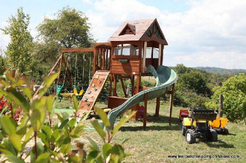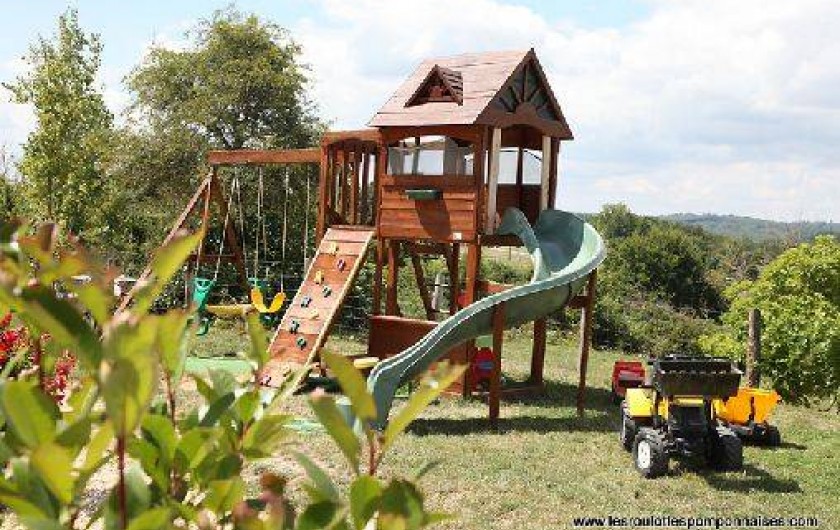 d'une salle de bain, un coin cuisine, un chauffage pour les nuits froides, un salon de jardin avec barbecue et chaises longues. Les enfants vont se réjouir de profiter de la magnifiques place de jeux (balançoires, toboggan, etc...). La piscine d'été fera bien des heureux !