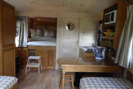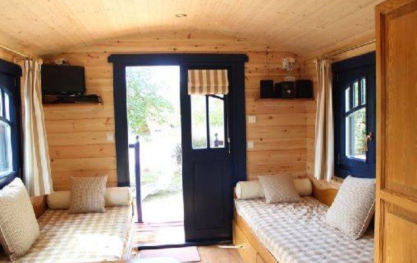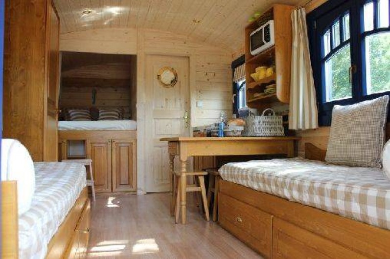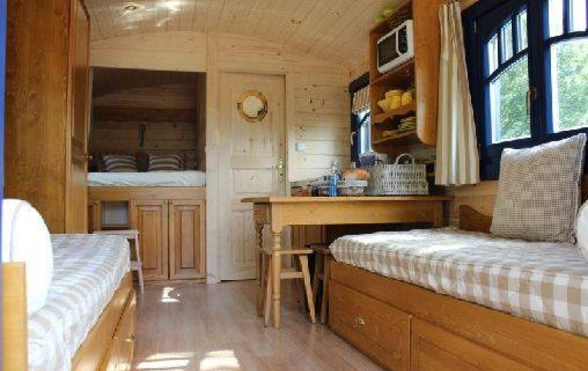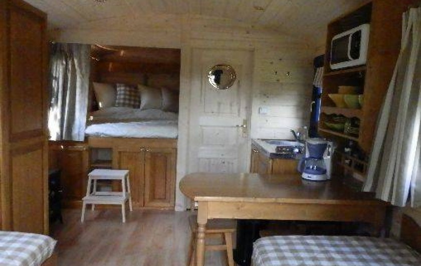 Elle est entièrement équipée pour 4 personnes (possibilité d'amener un lit bébé pour un 3ème enfant), kitchenette, salle de bains comprenant douche et WC. Les lits sont faits à l'arrivée comme dans une chambre d’hôtes, serviettes de toilettes, produits de douche et kit entretien.