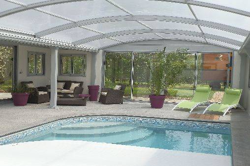 fermant à clé au-dessus du bassin et terrasse extérieure.Naturisme autorisé dans la piscine.