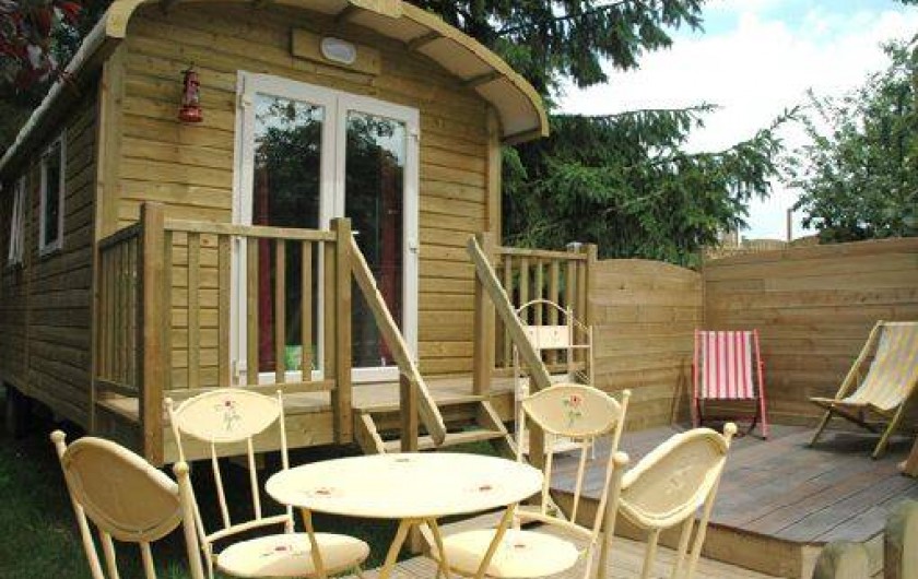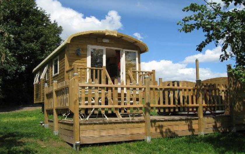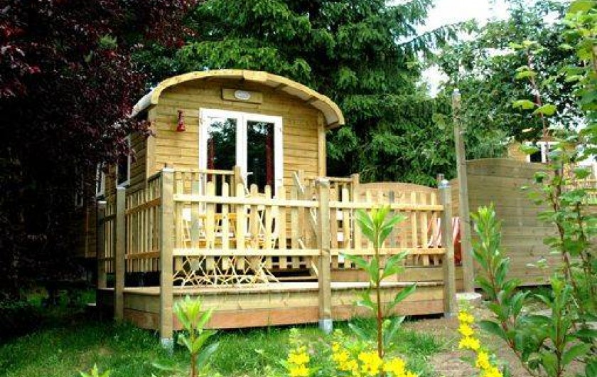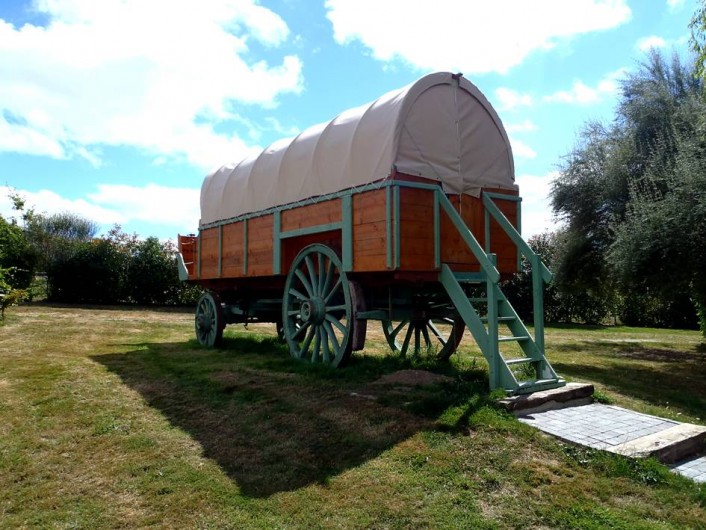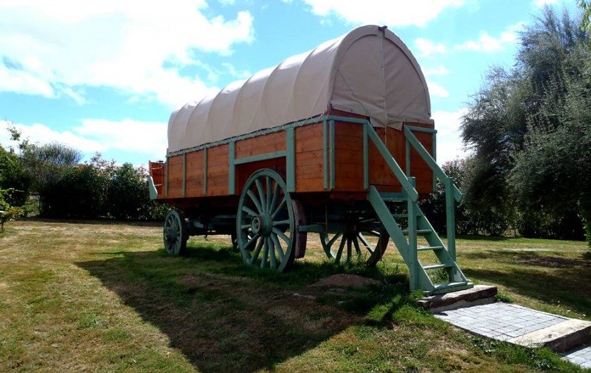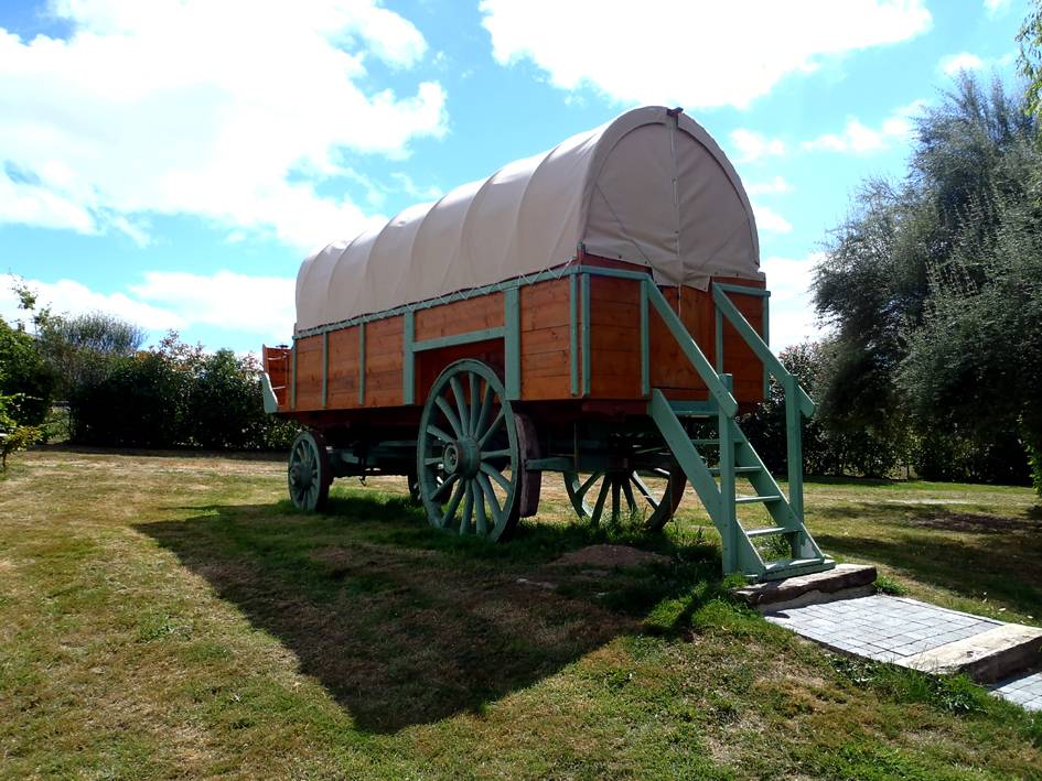 Location roulottes, tipi, chariot western et mobil-home. La métairie de saint-valay, ancienne ferme des côtes d'armor en bretagne, vous propose 3 roulottes, 1 tipi et 1 mobil-home, installés dans un verger de 5000 m2 . Chaque hébergement est équipé d'une terrasse, d'un barbecue.Parking privé.