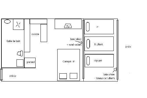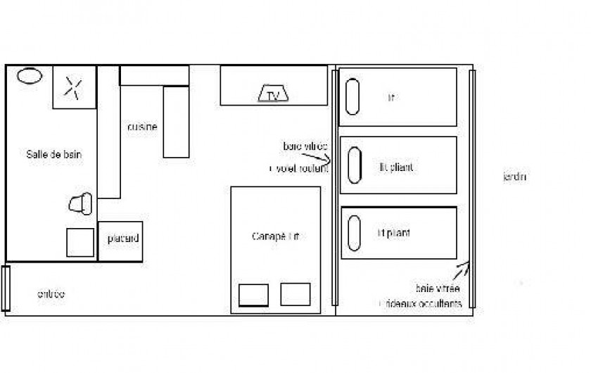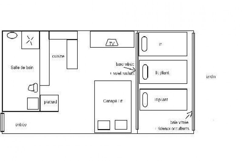 - Pièce principale avec canapé-lit (système BZ, 2 places), téléviseur avec de nombreuses chaînes (Freebox TV), table pour vos repas, lampe halogène, ...
