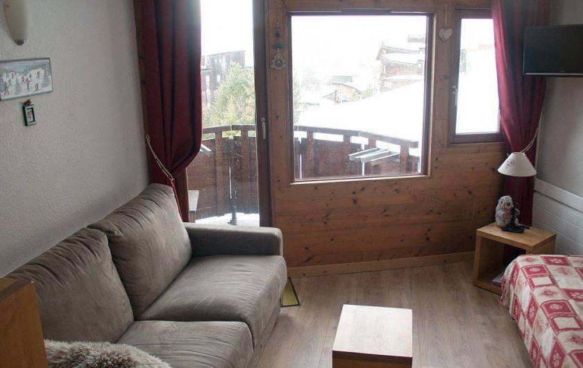on trouve 1 canapé neuf de 140*190 convertibles en lit, une banquette lit. Une télévision câblée, l'accès au balcon et divers rangements.