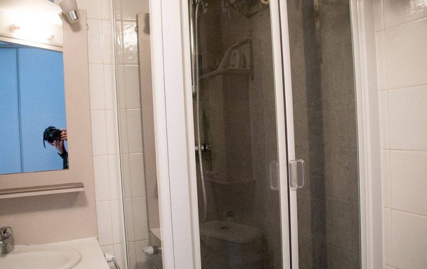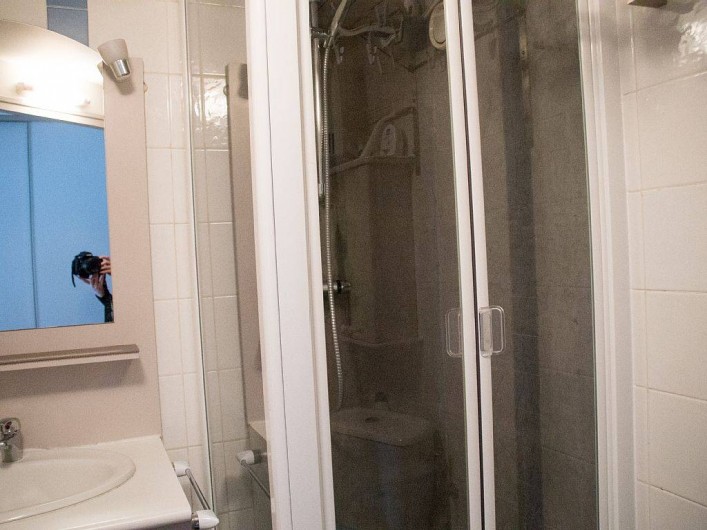 La salle de bains est constituée d'une douche, d'un lavabo de toilette et de rangement. Par ailleurs, celle-ci est entièrement carrelée.
